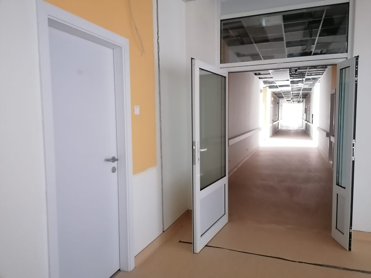 На сегодня объект находится в высокой степени готовности – 87%. Строители доложили, что на объекте продолжается работа по внутренней отделке, устройству полов под оборудование, подвесных потолков, установке светильников и розеток в специальных помещениях для компьютерного томографа и аппарата для маммографии, облицовке стен керамической плиткой в вестибюле второго блока. Также продолжаются работы по благоустройству территории. Всего на объекте работают 102 человека.