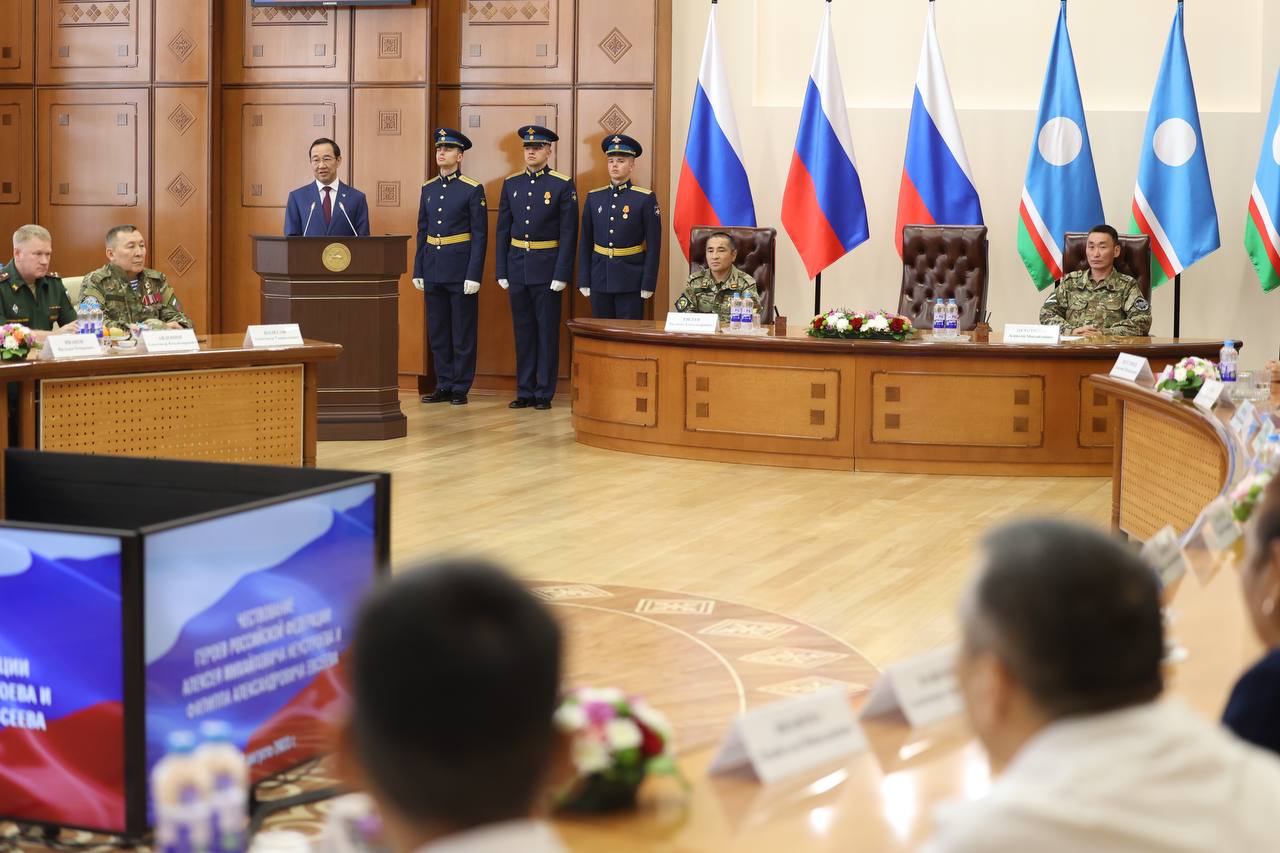 Сегодня, 30 августа, в Доме правительства Республики Саха (Якутия) состоялось торжественное чествование Героев Российской Федерации Филиппа Евсеева и Алексея Неустроева. На мероприятие были приглашены родственники и близкие бойцов, участники специальной военной операции и ветераны боевых действий, юнармейцы.