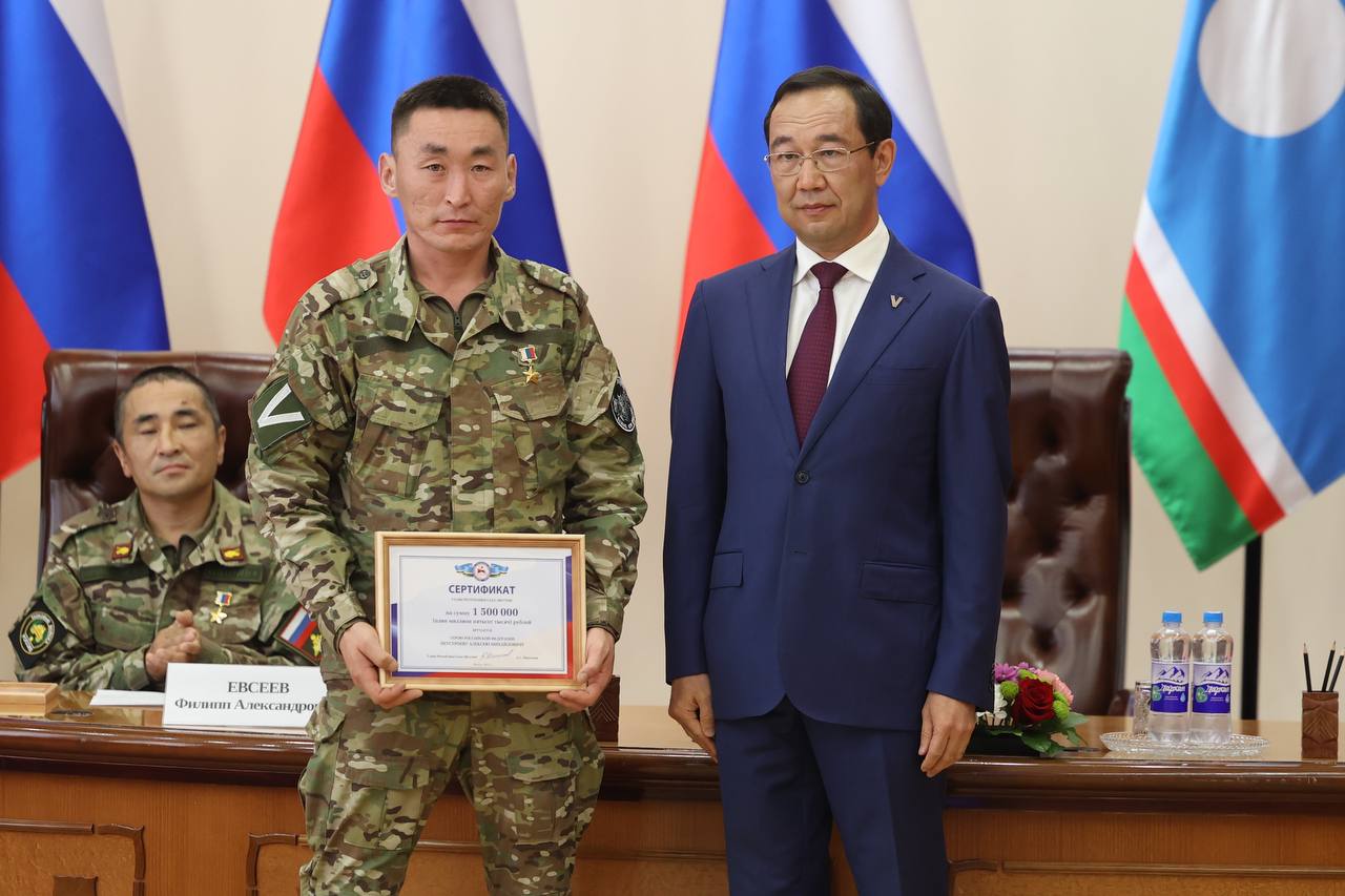 Героев Российской Федерации на мероприятии тепло поздравили Герой Российской Федерации , командир якутского добровольческого отряда «Боотур-1» батальона «БАРС-2» Александр Колесов и военный комиссар Якутии Александр Авдонин.