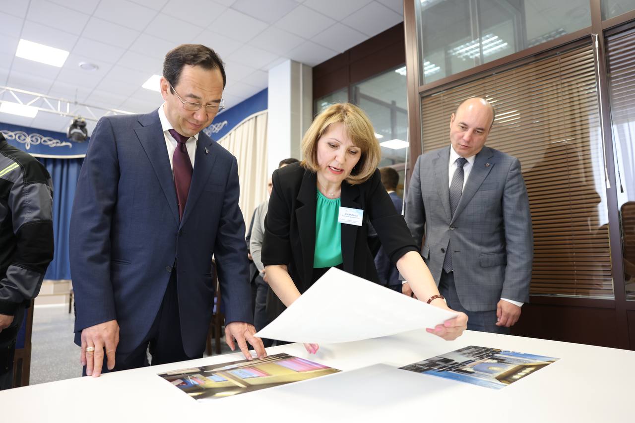 Начальник отделения КСК с большой гордостью представил Главе Якутии отремонтированный концертный зал, в котором занимаются воспитанники театральной студии «Амплуа».