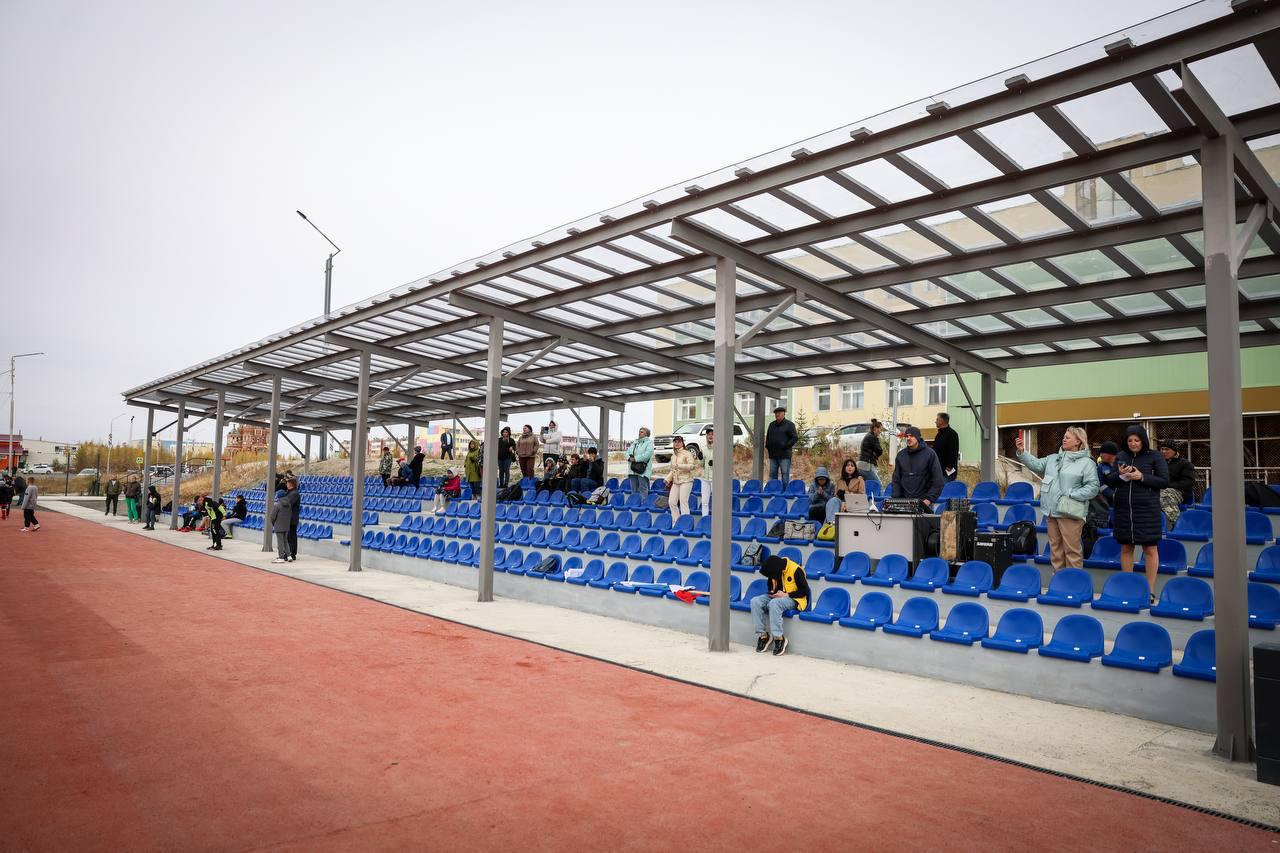 На территории средней школы №19 имени Л.А. Попугаевой г. Удачный Мирнинского района построили городской спортивный стадион по госпрограмме «Развитие физической культуры и спорта в Республике Саха (Якутия) на 2020-2024 годы».