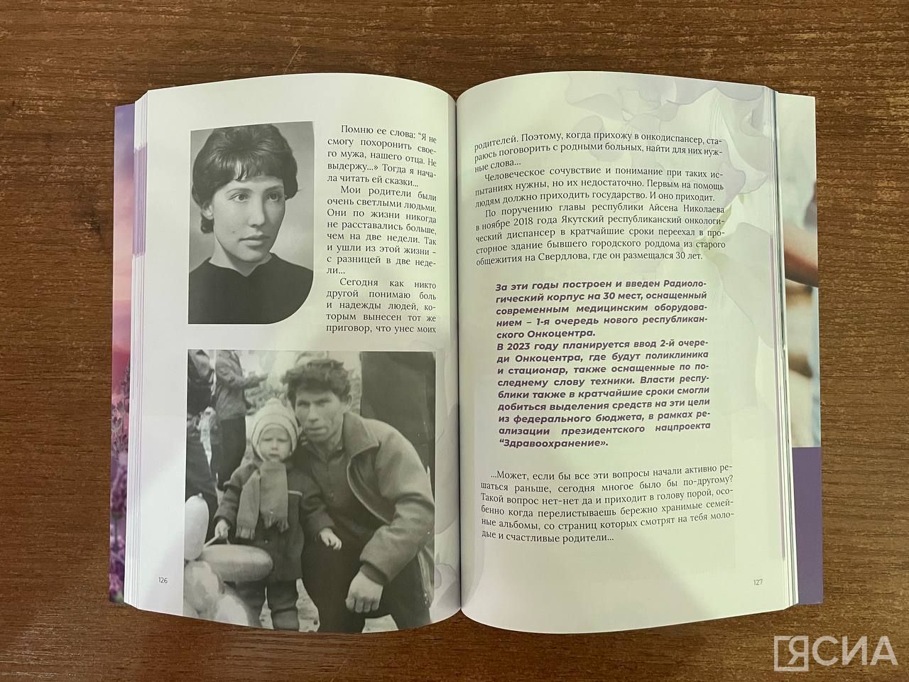«Сегодня в республике на диспансерном учёте состоят более 13 тысяч пациентов. По заболеваемости на первом месте рак лёгких, на втором – молочной железы, затем рак печени. Эта книга – большая поддержка для пациентов, которые сейчас проходят лечение. Ранее люди, столкнувшиеся с раком, часто скрывали болезнь, а сейчас эта тема стала менее табуированной, и это дорогого стоит. Почитать книгу будет полезно и интересно всем», — сказала главный врач Якутского республиканского онкологического диспансера Татьяна Николаева.