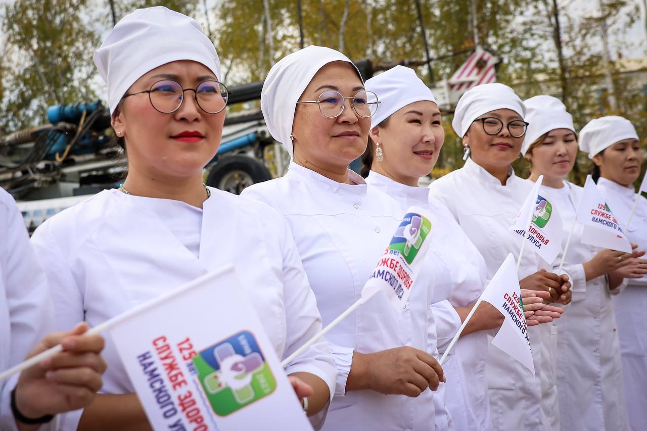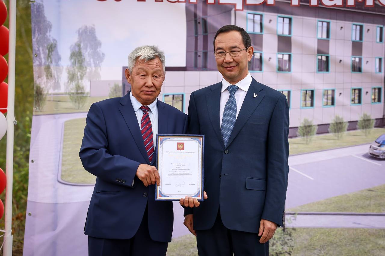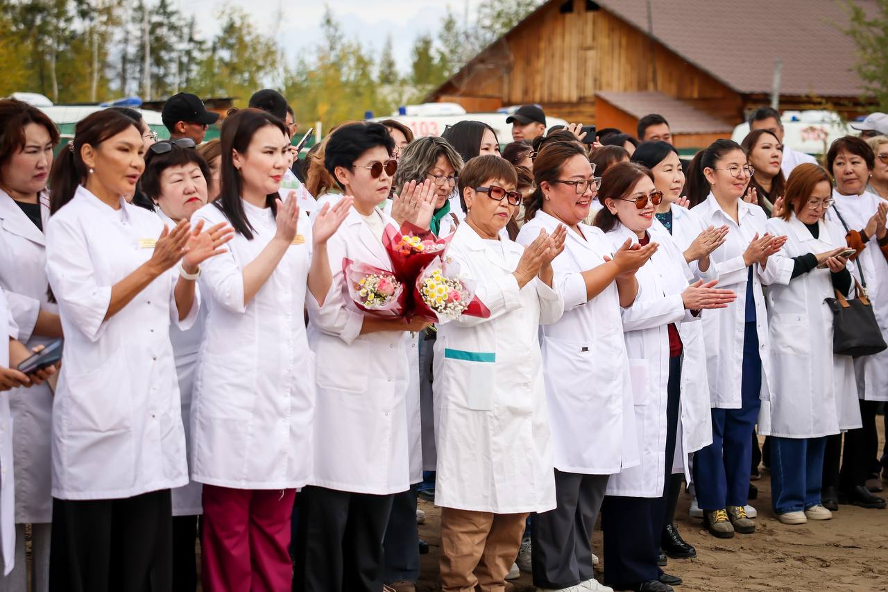 «За эти годы в республике построено много объектов здравоохранения. Буквально вчера на совещании по вопросам реализации программы развития дальневосточных городов, проведённом по ВКС Президентом нашей страны Владимиром Путиным, отметил, что благодаря поддержке в прошлом году введён в строй современнейший уникальный кардиососудистый центр, построенный благодаря единой президентской субсидии по линии Минвостокразвития. До конца этого года заработают новые крупные больничные комплексы в селе Хону Момского района, в селе Чурапча, поликлиника в селе Ытык-Кюель Таттинского улуса. В планах — возведение новых больничных комплексов в Вилюйском, Мегино-Кангаласском и других районах. Это яркий показатель того, что наш Президент, наша страна, республика придают огромное значение повышению здоровья населения», – сказал Айсен Николаев.