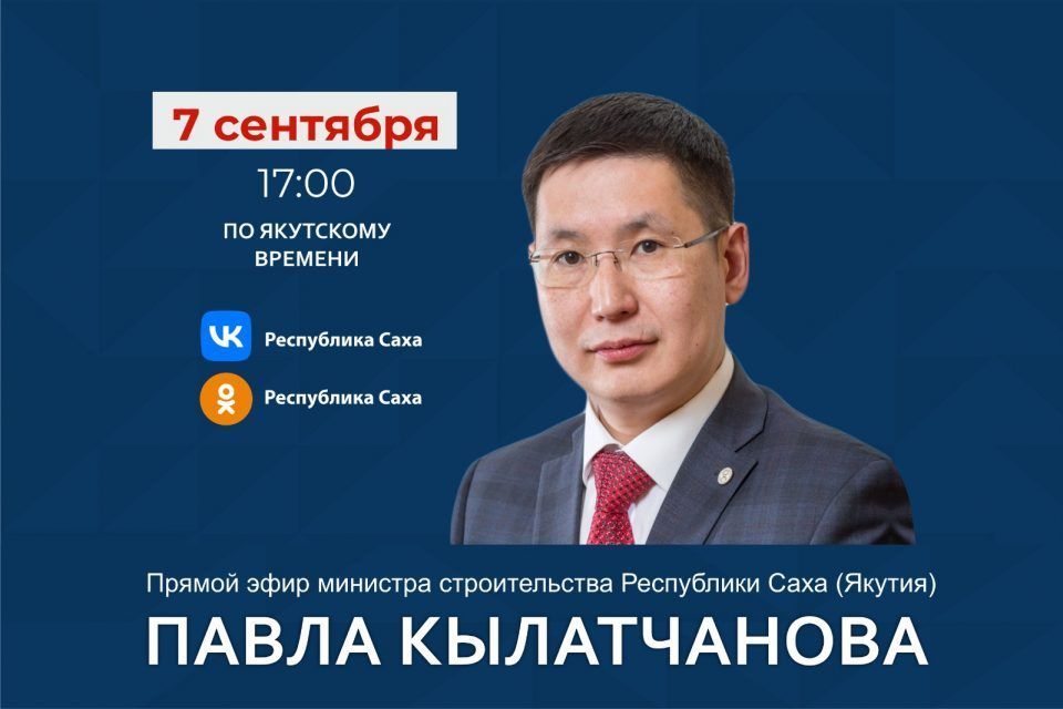 В четверг, 7 сентября, министр строительства Якутии Павел Кылатчанов проведет прямой эфир в социальных сетях. Об этом сообщает пресс-служба главы и правительства республики.