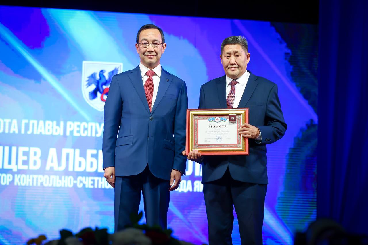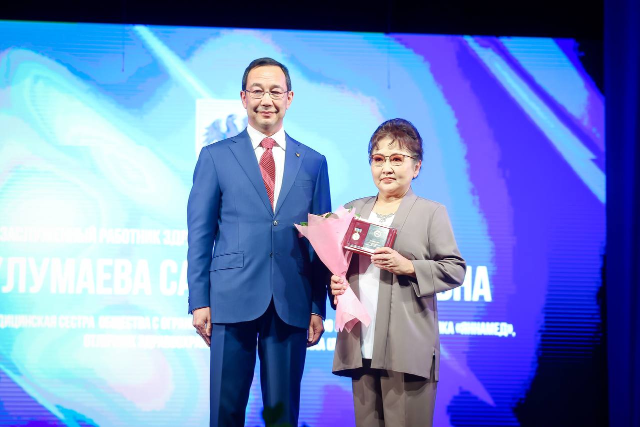 В ходе торжественного собрания общественности, посвященного 391-летию со дня основания Якутска, Айсен Николаев также вручил государственные награды, отметил знаками отличия.