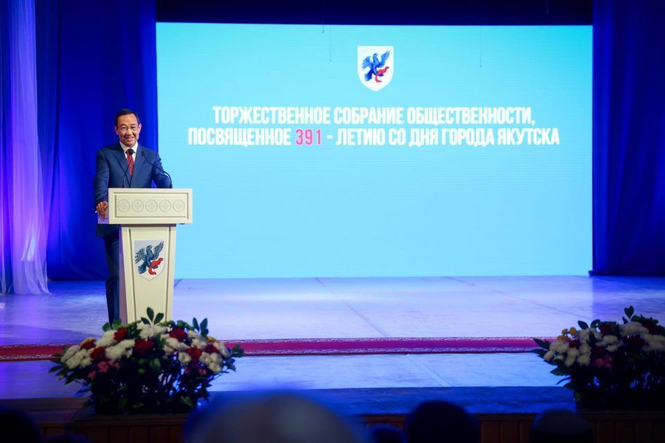В Якутске 8 сентября прошло торжественное собрание общественности, посвященное 391-летию со дня основания столицы республики. С праздником жителей города и всей республики поздравил глава региона Айсен Николаев.