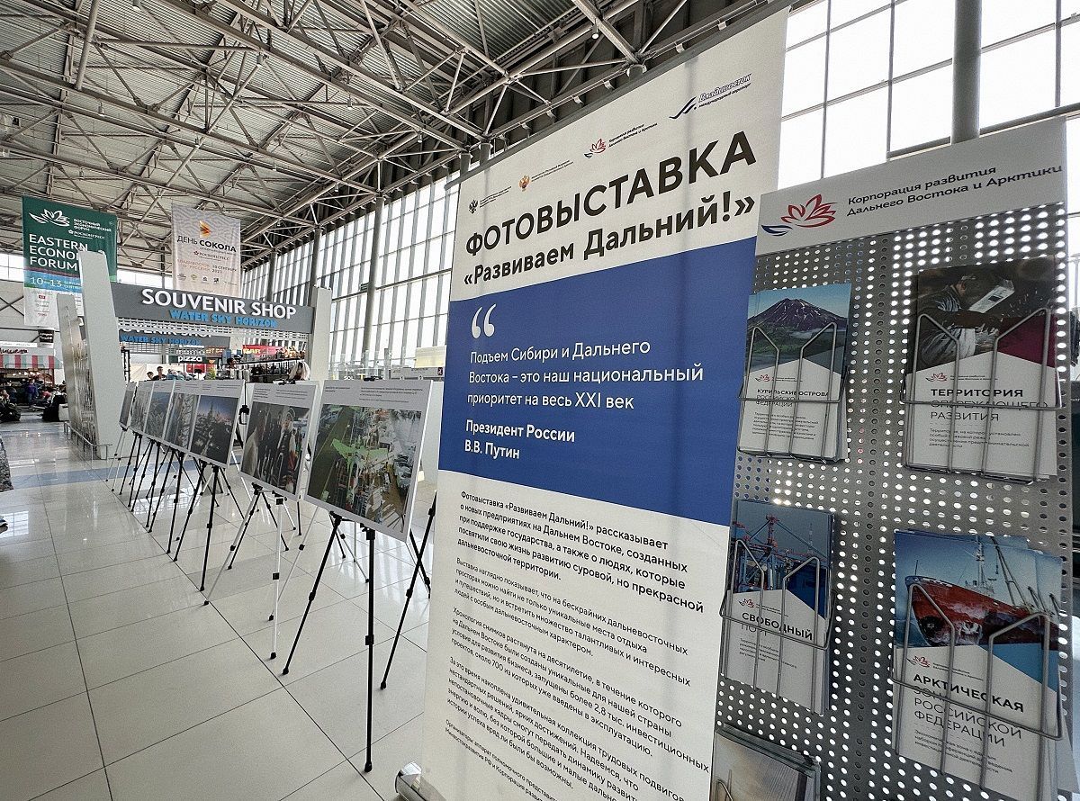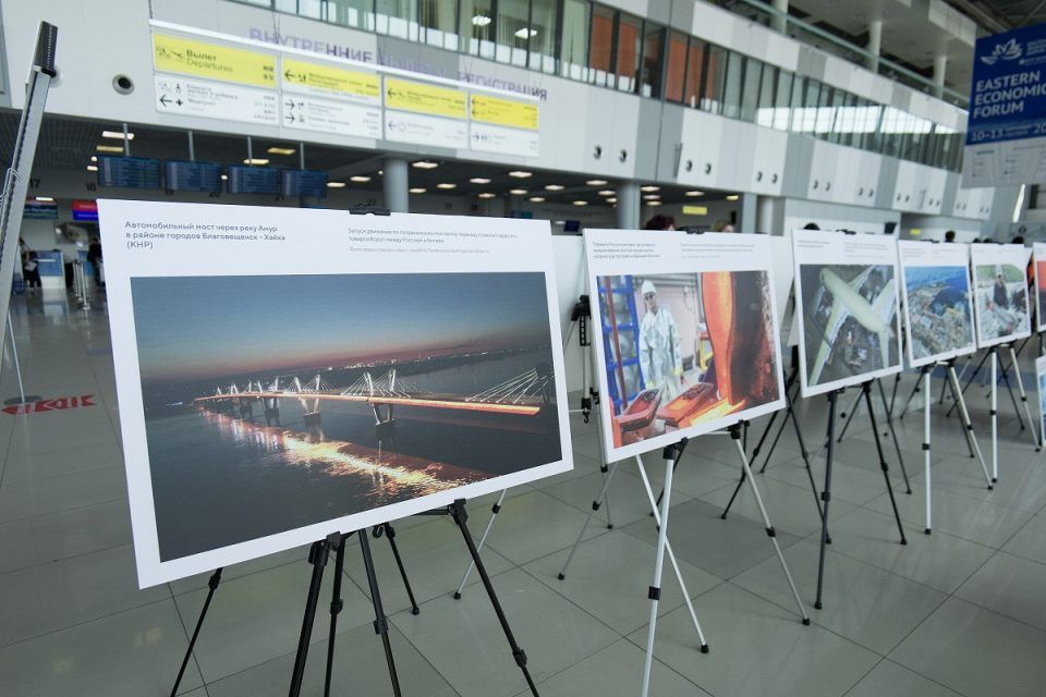 Фотовыставка «Развиваем Дальний!», организаторами которой выступили Корпорация развития Дальнего Востока и Арктики при поддержке аппарата полномочного представителя президента Российской Федерации в Дальневосточном федеральном округе и Минвостокразвития России, открылась в терминале воздушной гавани накануне форума в зоне вылета внутренних воздушных авиалиний.