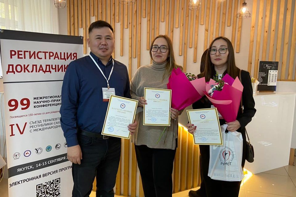 Во время торжественного открытия съезда врачам-терапевтам РБ № 2 — ЦЭМП Алине Тен, Михаилу Соломонову и Саргылане Федотовой за добросовестный труд в системе здравоохранения были вручены благодарственные письма министра здравоохранения республики Лены Афанасьевой.