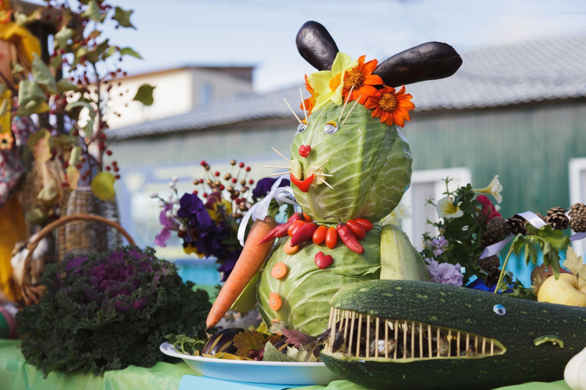 Карета из тыквы для золушки, нарядный зайка из капусты, доктора из арбузов – эти и другие сказочные персонажи вызывали радостную улыбку.