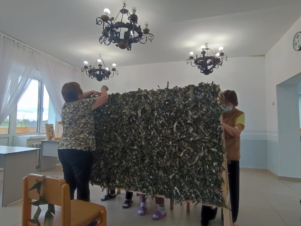 «На сегодня филиалы общественного движения работают в гериатрическом и лечебно-реабилитационном центрах. Знаем, что на территории СВО такие сети жизненно необходимы. Один боец уносит с собой в зону СВО по четыре сетки, поэтому необходимость в плетении маскировочных сетей очень большая. На сегодня нами передано шесть сеток разных размеров. Задействованы в этой работе все – медперсонал и пациенты. Помимо оказания помощи для наших бойцов на передовой, сотрудники и пациенты совместно проводят время, что благоприятно сказывается на здоровье пожилых людей и сплачивает коллектив. Кроме того, у себя в учреждении собираем банки для изготовления окопных свечей», — сообщила председатель первичной профсоюзной организации Республиканской клинической больницы № 3 Евдокия Богдашина.