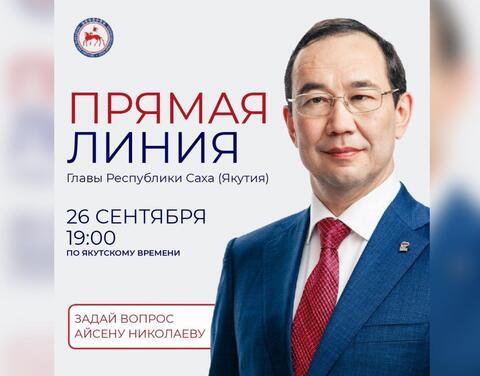 Сегодня, 26 сентября смотрите «Прямую линию» с Главой Республики Саха (Якутия) Айсеном Николаевым.