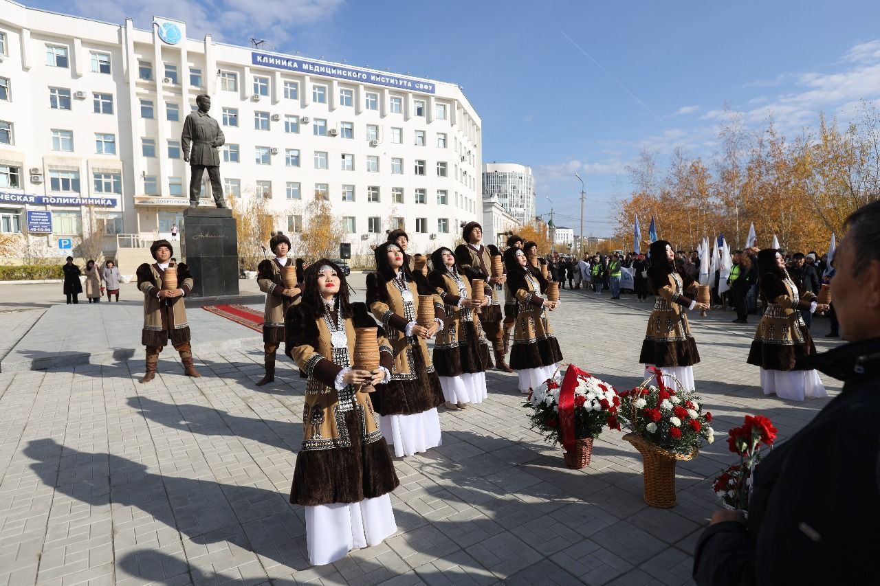 В торжественной церемонии приняли участие председатель Государственного Собрания (Ил Тумэн) Якутии Алексей Еремеев, народные депутаты Якутии, государственные и общественные деятели, студенты Северо-Восточного федерального университета.