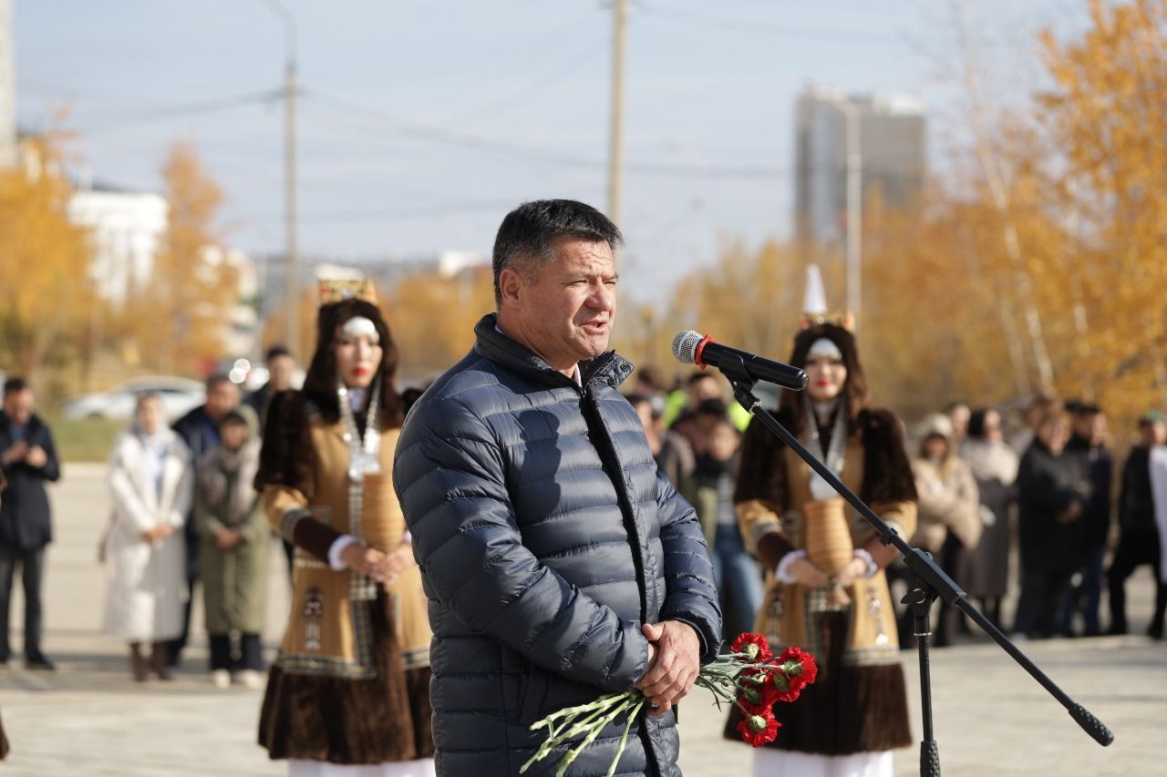 Сегодня, 27 сентября, в День государственности Республики Саха (Якутия), Председатель Правительства РС(Я) Андрей Тарасенко принял участие в торжественной церемонии возложения цветов к памятнику одному из основателей республики, выдающемуся государственному и общественному деятелю Якутии Максиму Кировичу Аммосову.