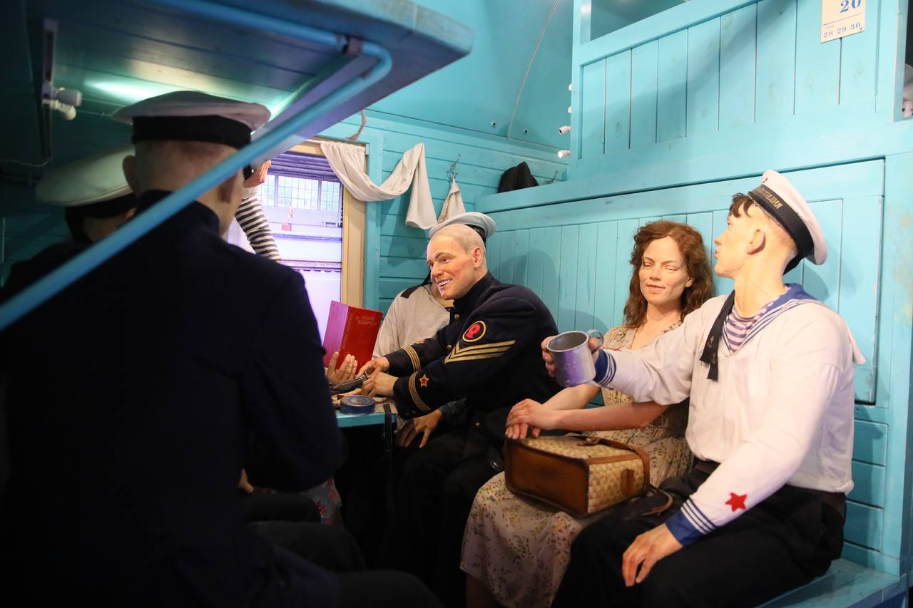 В десяти тематических вагонах, посвящённых Великой Отечественной войне, представлены более 150 скульптур. Некоторые образы фигур взяты из фотографий сороковых годов прошлого века. Благодаря световым и звуковым эффектам посетители погружаются в события Великой Отечественной войны.