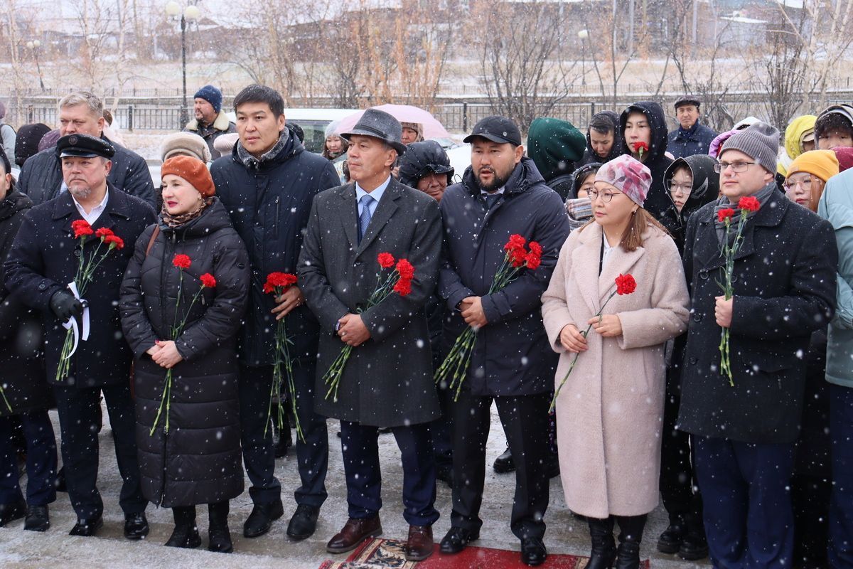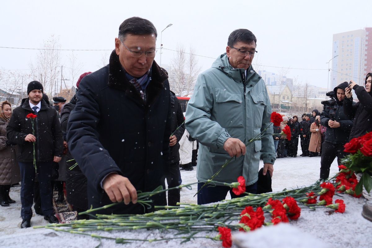 В церемонии возложения цветов приняли участие заместитель председателя Госсобрания (Ил Тумэн) Якутии Афанасий Владимиров, заместитель председателя правительства Якутии Анатолий Семенов, и. о. министра образования и науки Нюргуна Соколова, глава Якутска Евгений Григорьев, члены правительства, народные депутаты республики, коллектив республиканского лицея-интерната, Ассоциация директоров школ Якутска.