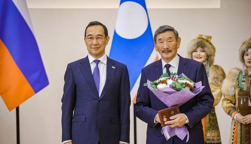 Глава Якутии Айсен Николаев поздравил с 75-летним юбилеем заслуженного работника народного хозяйства, народного писателя Якутии Дмитрия Наумова.