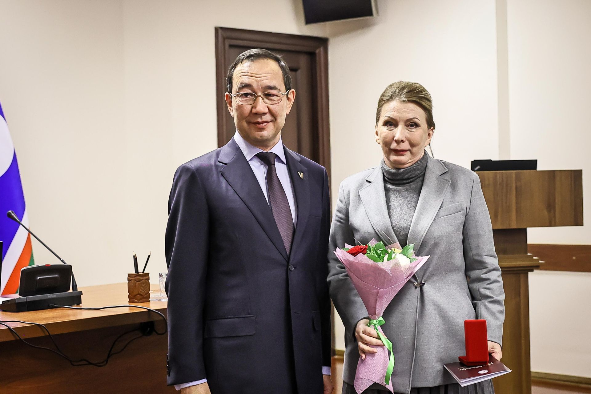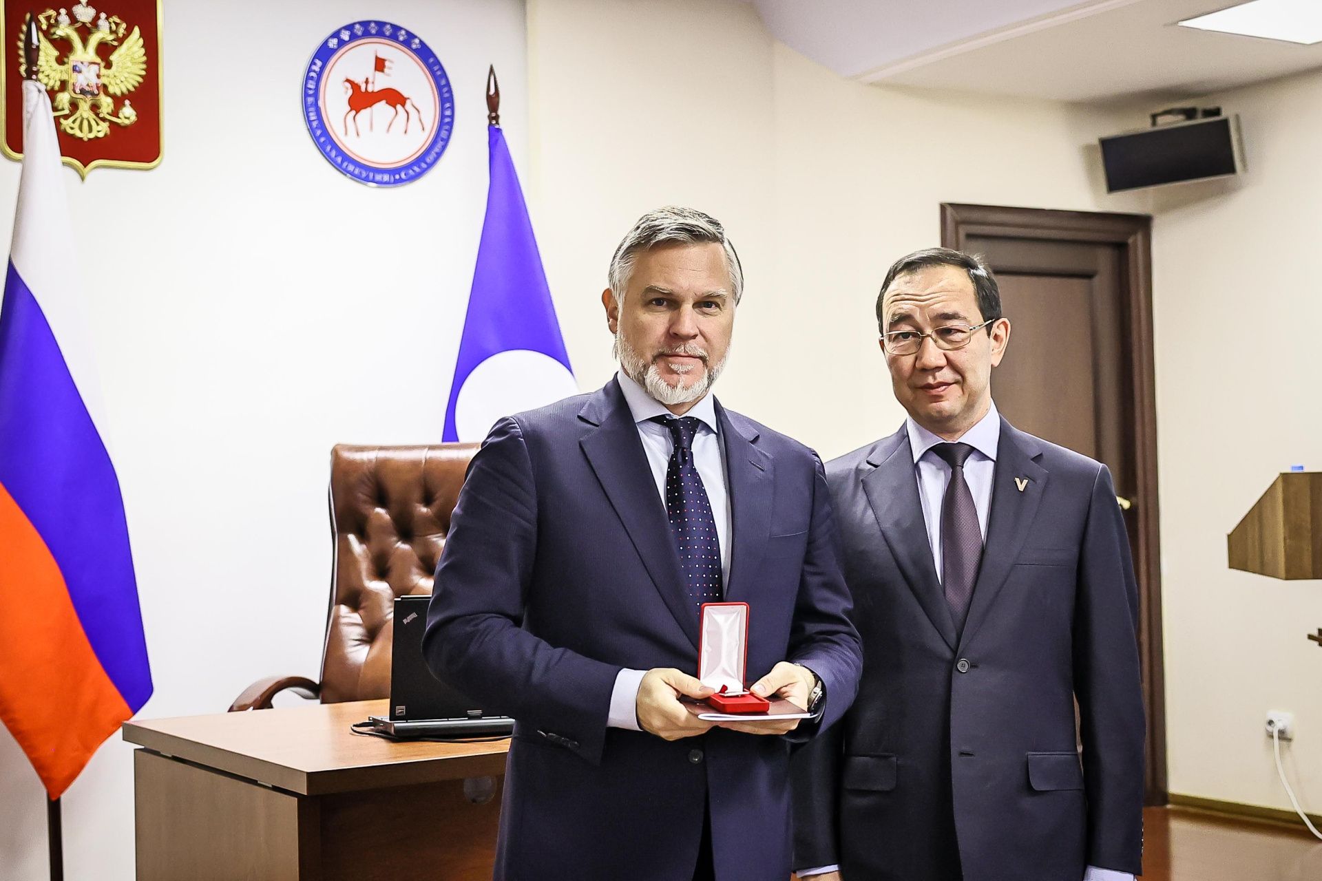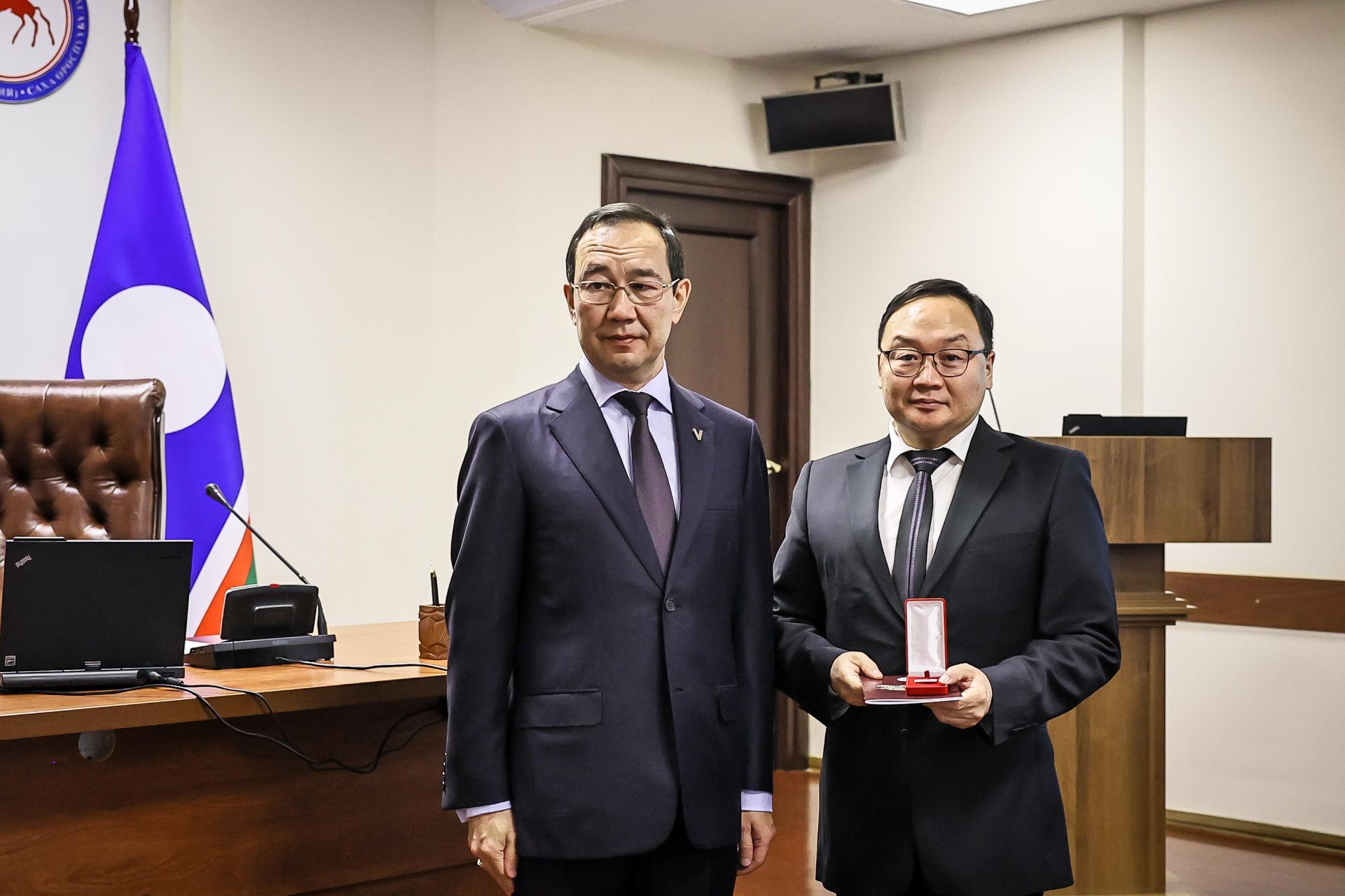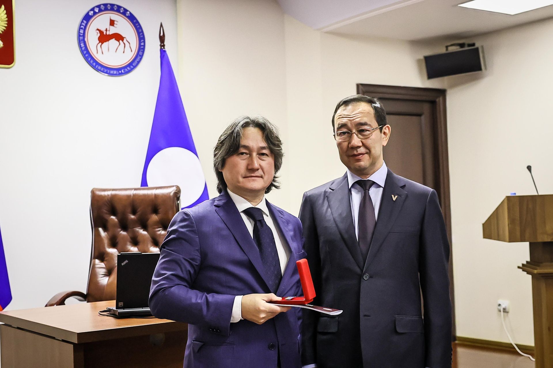 Глава Якутии вручил нагрудные знаки членов Правительства РС(Я) и Кодекс этики и служебного поведения лиц, замещающих государственные должности.