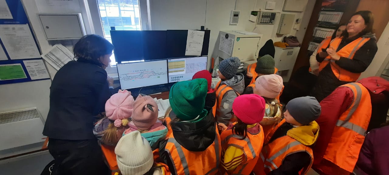 Неподдельный интерес вызвала и работа дежурного по станции - стрелочный перевод и движение поезда на компьютере, за которым дети наблюдали, затаив дыхание.