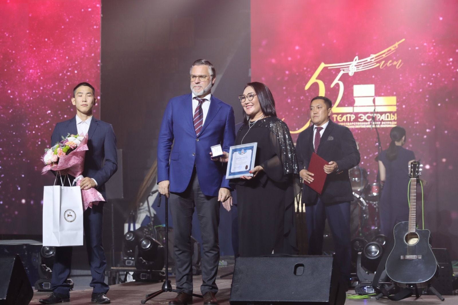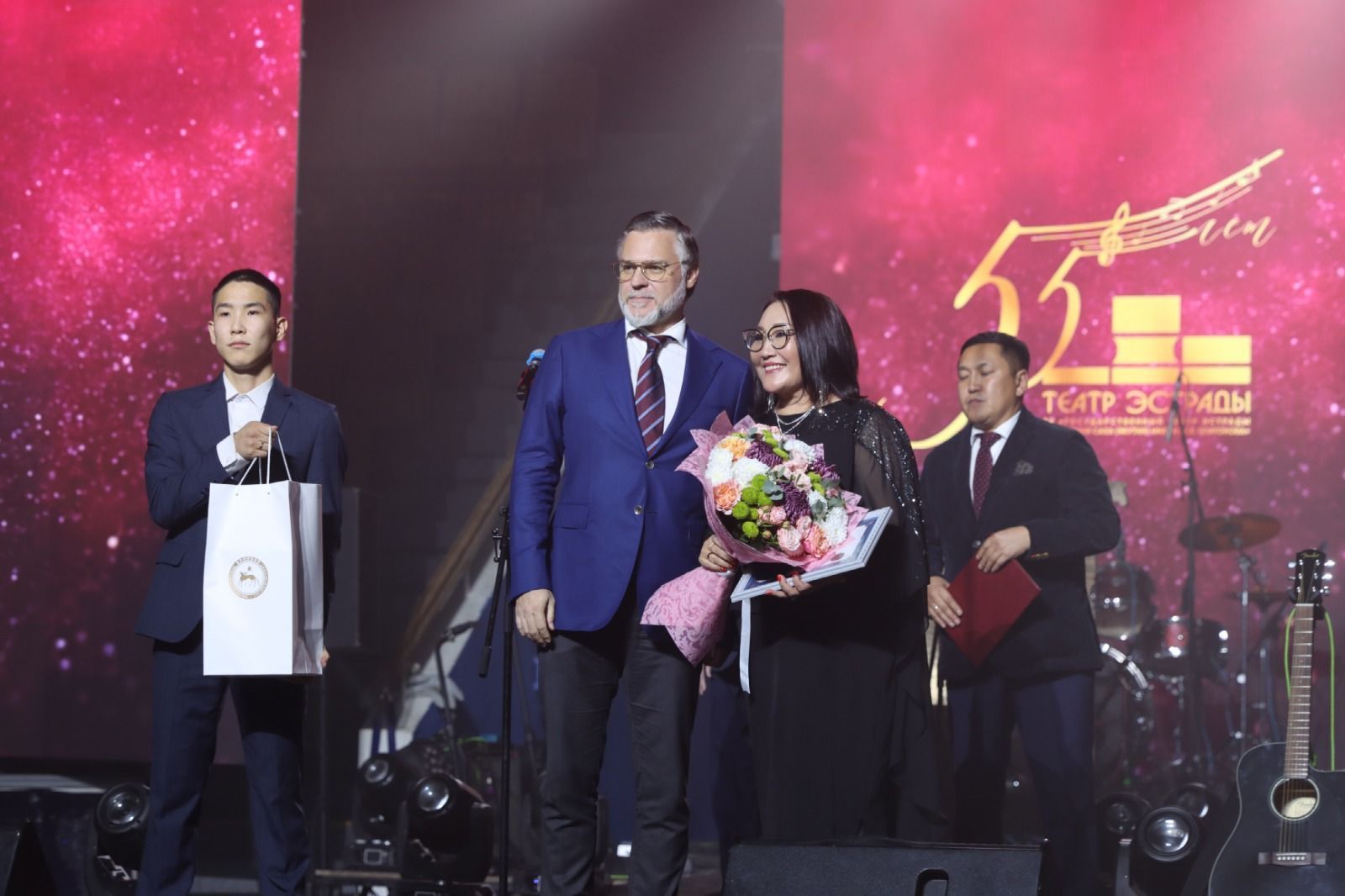 Премьер-министр Якутии Кирилл Бычков от имени Правительства Республики Саха (Якутия) 12 октября поздравил коллектив Государственного театра эстрады PC (Я) с 55-летием со дня открытия театра.