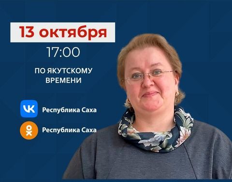 Заместитель министра труда и социального развития Республики Саха (Якутия) Теплякова Елена Юрьевна в пятницу, 13 октября 2023 года, проведет прямой эфир на официальных страницах Администрации Главы и Правительства республики SakhaGov в социальных сетях «ВКонтакте» и «Одноклассники».
