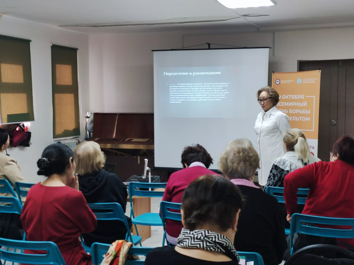 В рамках акции «СТОП инсульт!» проведён лекторий по профилактике инсульта на темы «Инсульт. Что важно знать», «Тайны памяти». Слушателям Школы третьего возраста рассказали, что такое инсульт, проинформировали о факторах риска, видах инсульта, объяснили, почему очень важно знать основные симптомы инсульта, и что категорически нельзя делать при инсульте. Также участники мероприятия ознакомились с правилами оказания первой помощи, с правилами «золотого часа» для пациента, реабилитации. Даны основные рекомендации, как избежать заболевания.