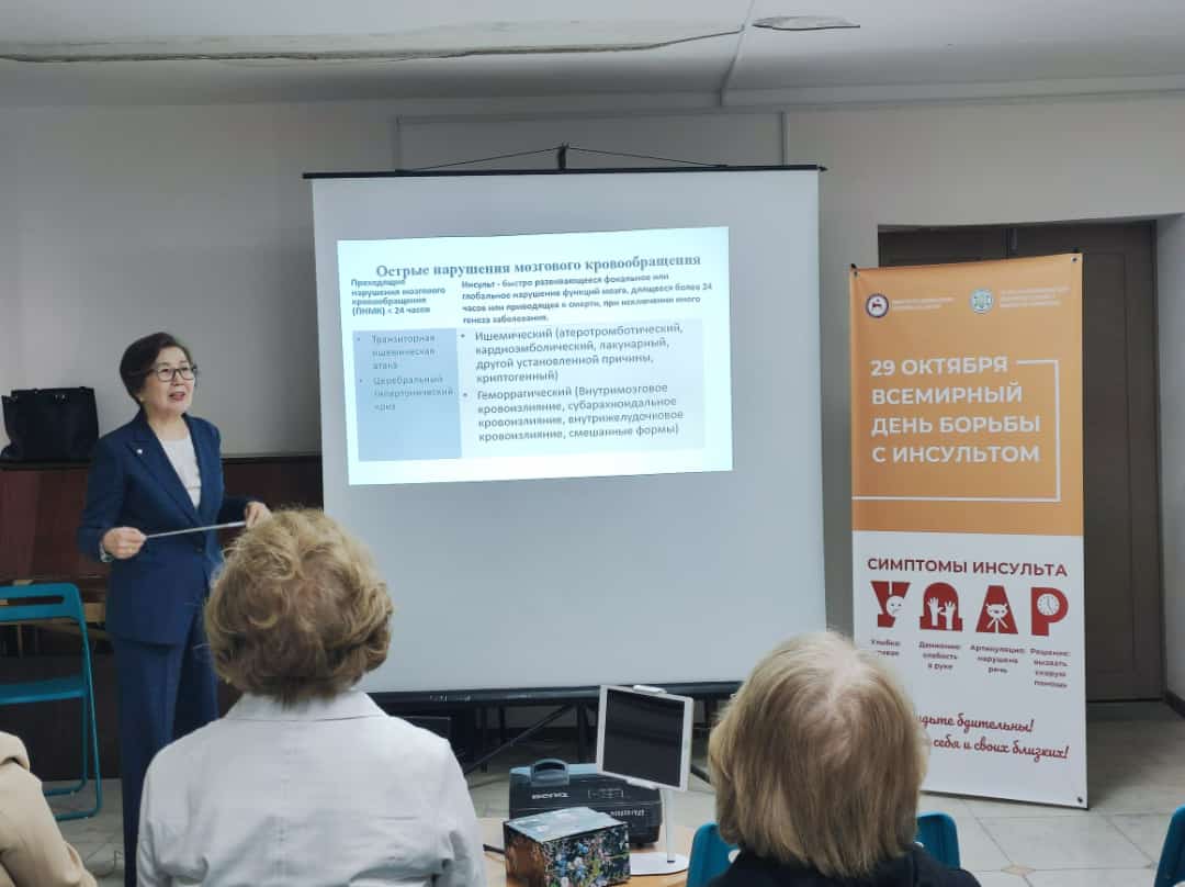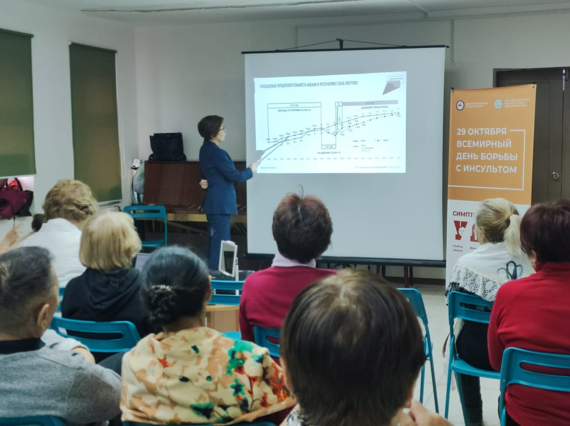 Для привлечения внимания населения к проблеме мозговых инсультов сегодня, 23 октября, в Школе третьего возраста проведена акция «СТОП инсульт!» с участием главного внештатного невролога Министерства здравоохранения Якутии, заведующей кафедрой неврологии и психиатрии Медицинского института СВФУ имени М.К. Аммосова Татьяны Николаевой.