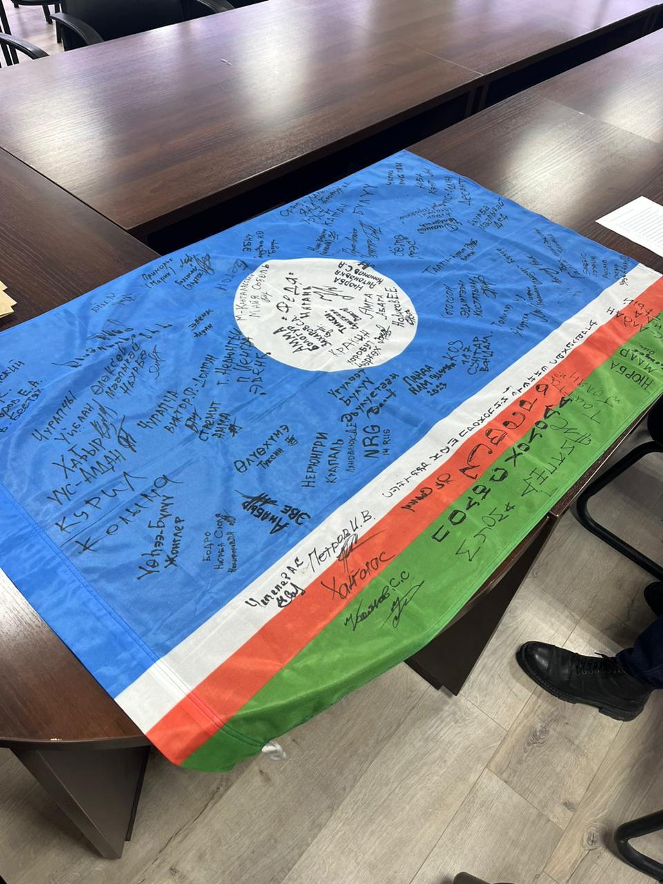 Ссылка на первоисточник: https://ysia.ru/flag-s-avtografami-uchastnikov-svo-peredali-v-muzejnyj-fond-istoricheskogo-parka-v-yakutske/