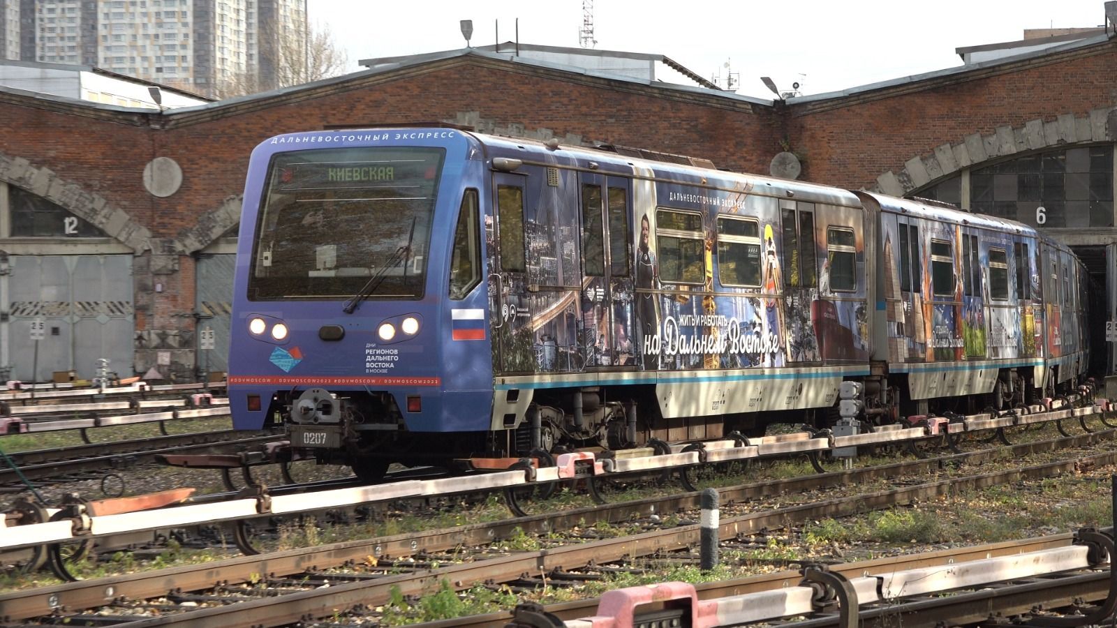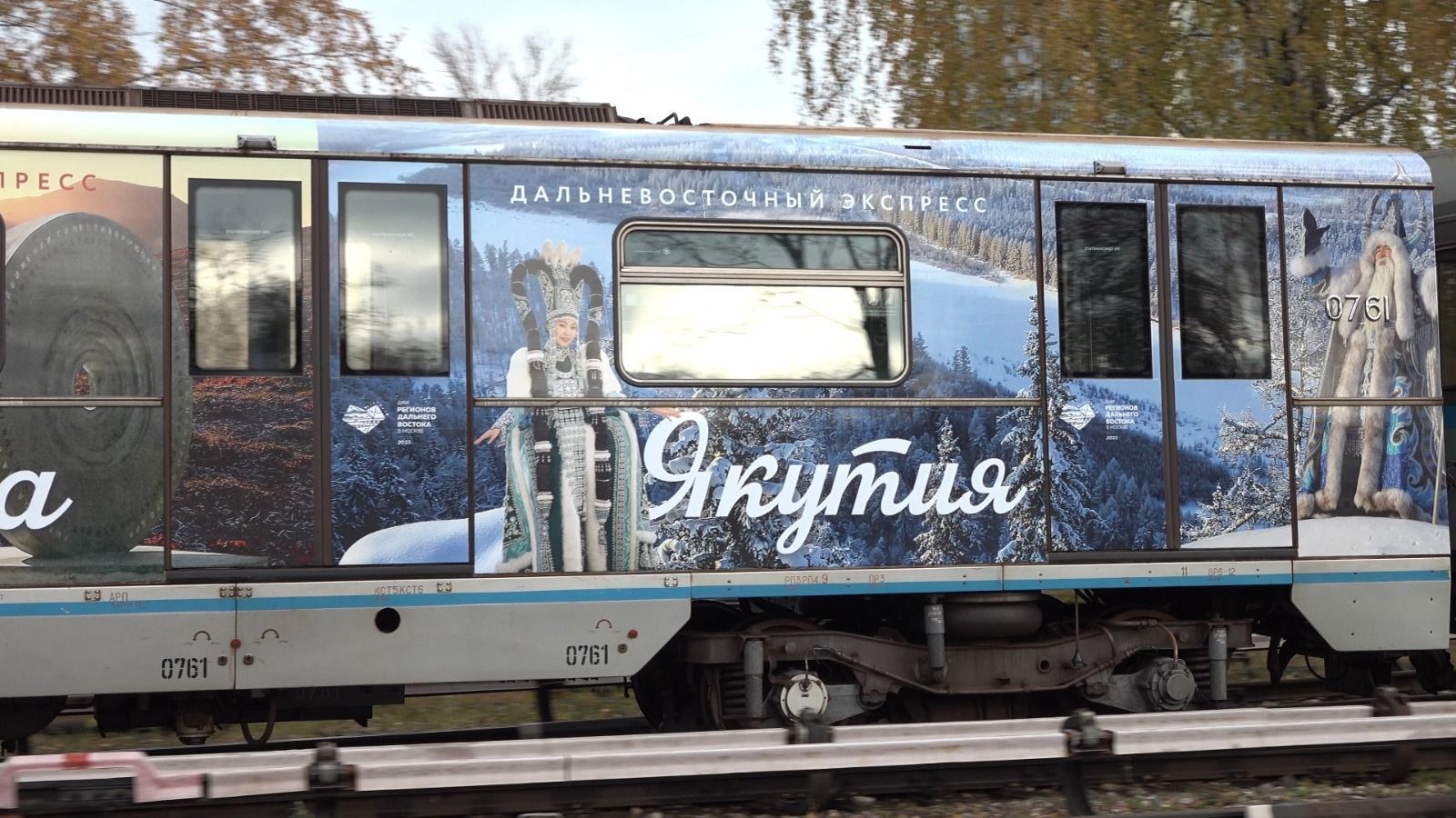 Специальный брендированный поезд «Дальневосточный экспресс» в шестой раз выходит на линию московского метро. Он будет курсировать по Арбатско-Покровской линии в течение полугода.