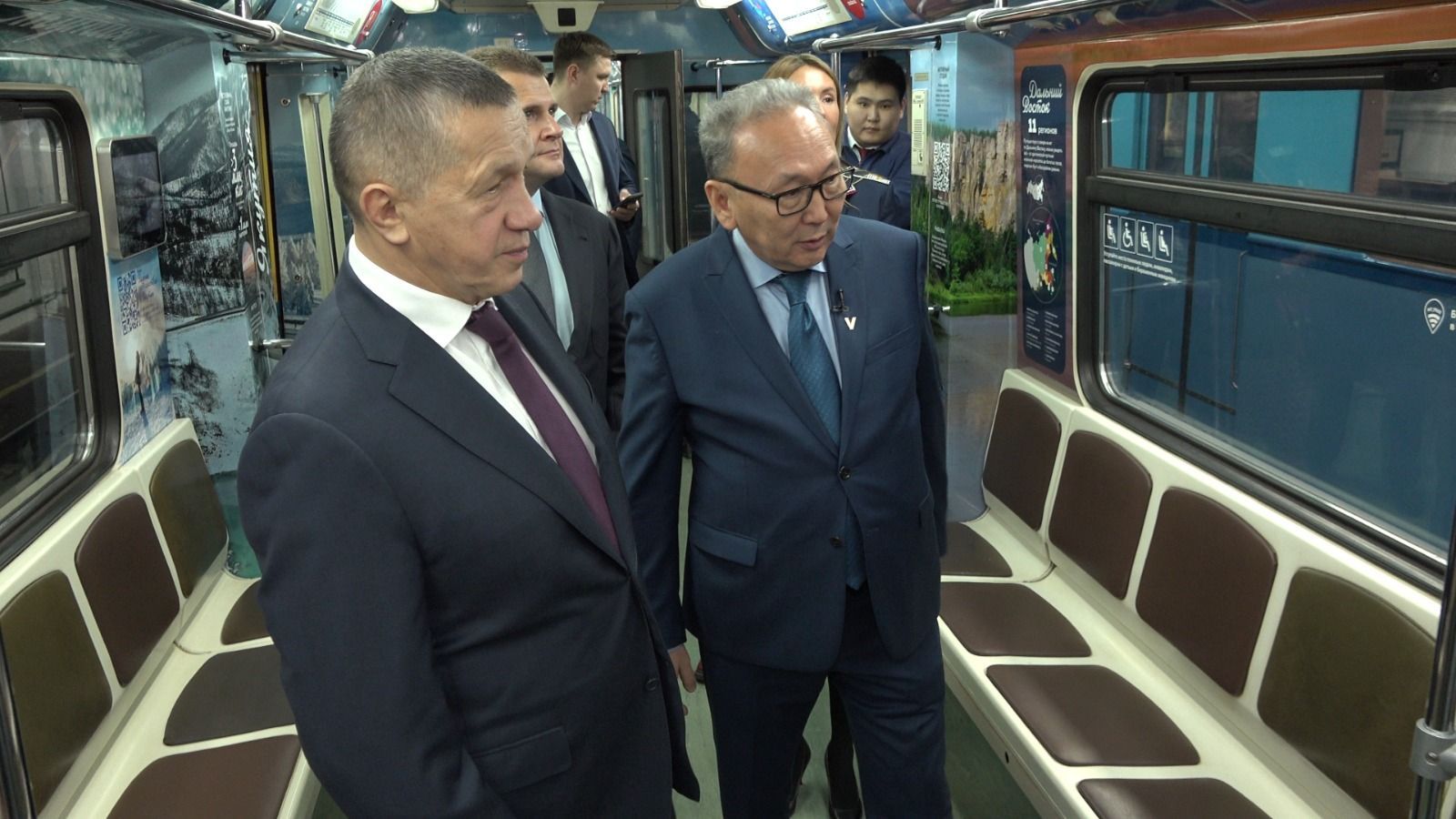 Один из тематических вагонов поезда посвящен Якутии. Республика Саха (Якутия) – самый большой и самый морозный регион России: именно здесь находится знаменитый полюс холода – Оймякон. Поэтому одно из центральных мест во внешнем оформлении вагона занимает владыка зимы Чысхаан. А главную роль играет красавица в национальном костюме – олицетворение богатой самобытной истории республики. Искусство, традиционная кухня, природные достопримечательности, а также феномен якутских креативных индустрий – стали главными темами внутреннего оформления вагона.