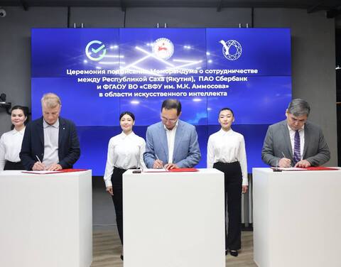 В четверг, 9 ноября, Глава Якутии Айсен Николаев, Президент, Председатель Правления Сбербанка Герман Греф и ректор Северо-Восточного федерального университета Анатолий Николаев подписали Меморандум о сотрудничестве по созданию лаборатории искусственного интеллекта.