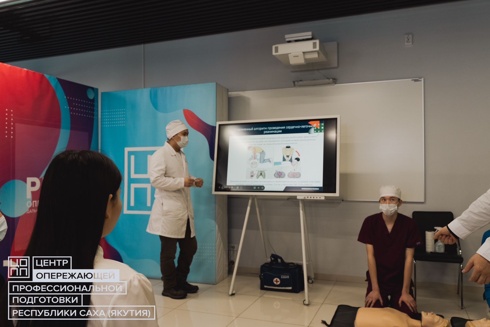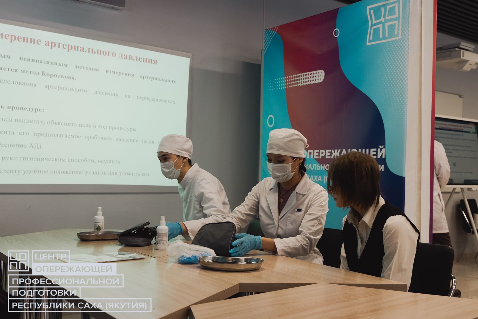 Якутский медицинский колледж проводит пробу по одной из самых популярных профессий «Фельдшер». Школьники учатся измерять артериальное давление, оказывать базовую первую помощь по сердечно-легочной реанимации и в хирургии в интерактивном формате.