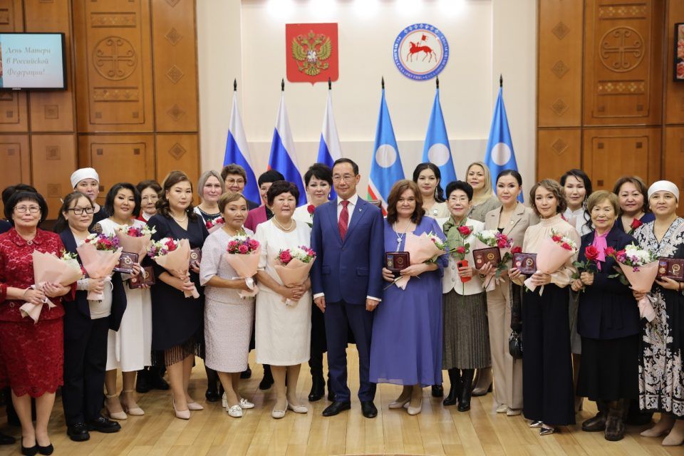Многодетным матерям и женщинам, которые внесли значительный вклад в социально-экономическое развитие республики, вручили государственные награды. Глава региона Айсен Николаев выразил свою благодарность за неутомимый труд, любовь и заботу, которые матери дарят не только своим детям, но и всему обществу. Награждение приурочено ко Дню матери в России, праздник отметят завтра, 24 ноября.