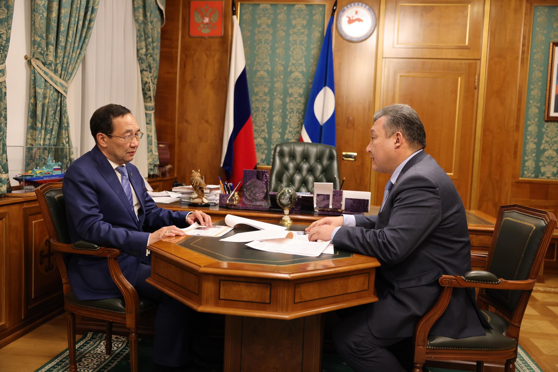 Глава Якутии Айсен Николаев 29 ноября провел рабочую встречу с директором Национального фонда «Барҕарыы» Афанасием Постниковым.