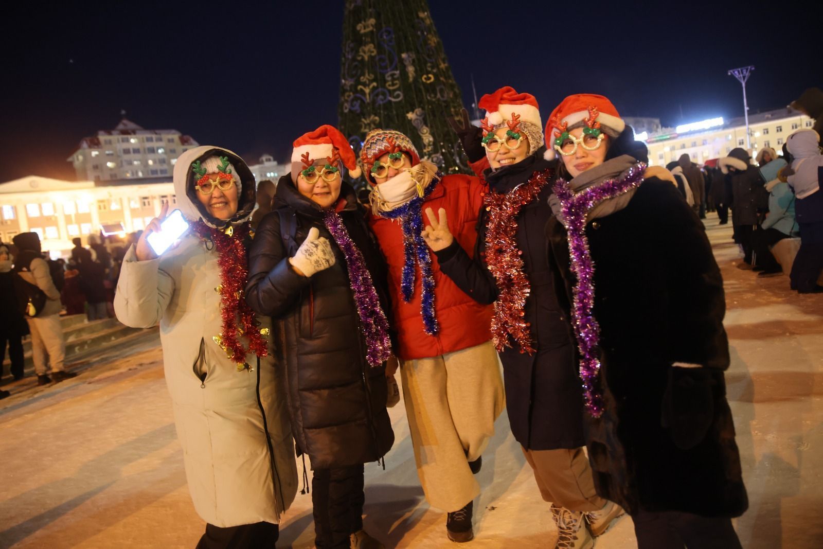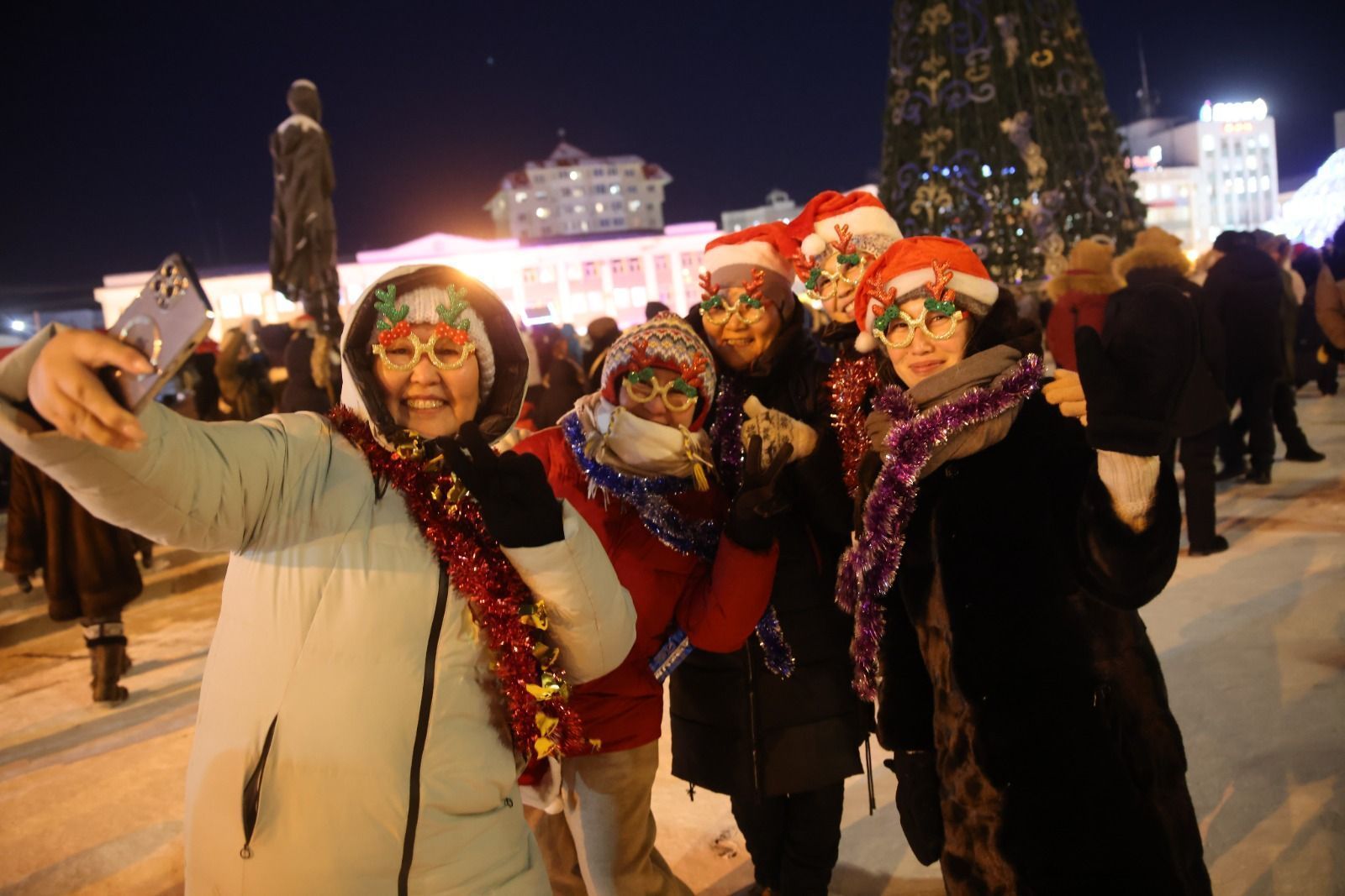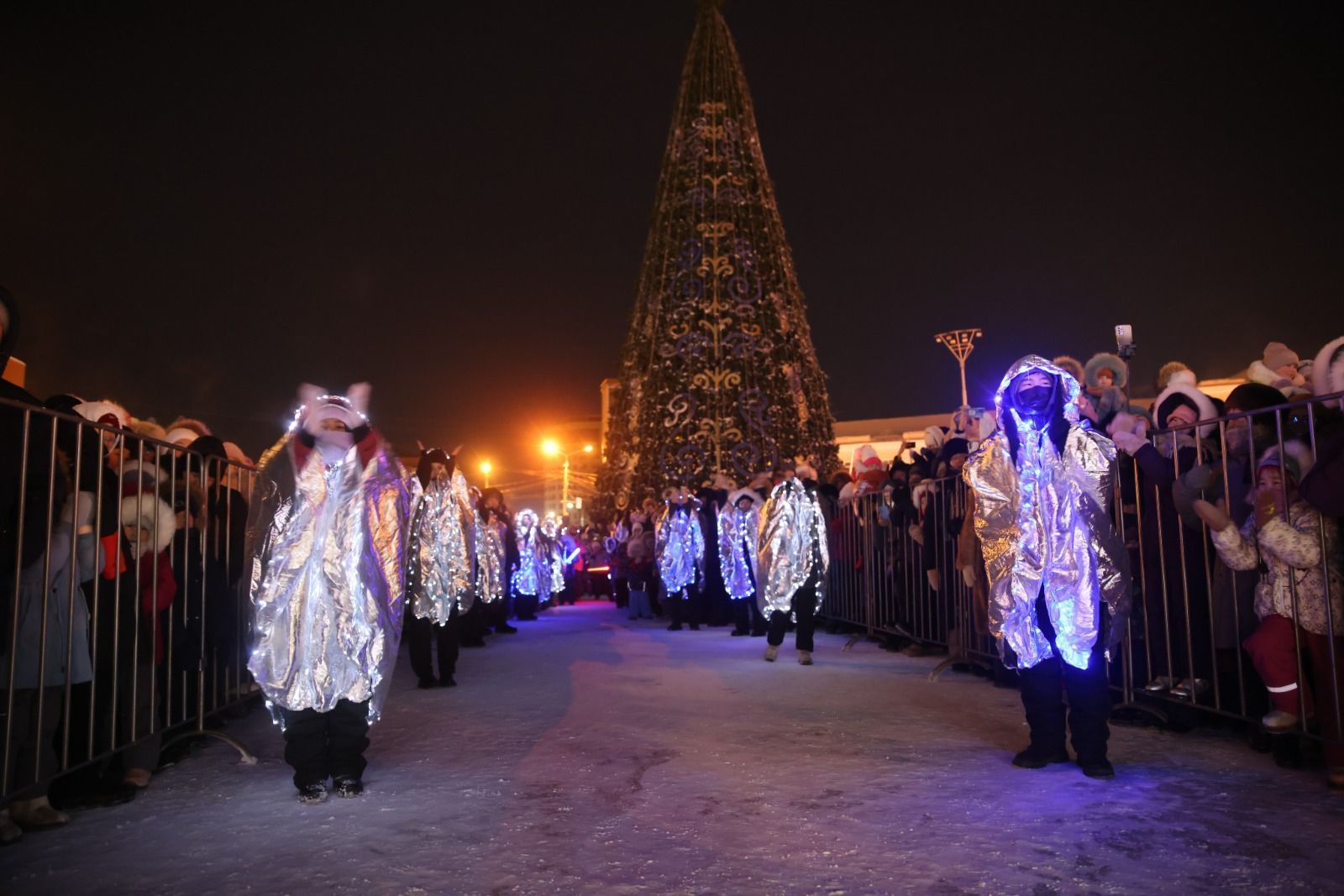 Старт зажжения всех новогодних ёлок в стране дали на площади Дружбы, где установлена главная ёлка Якутии.