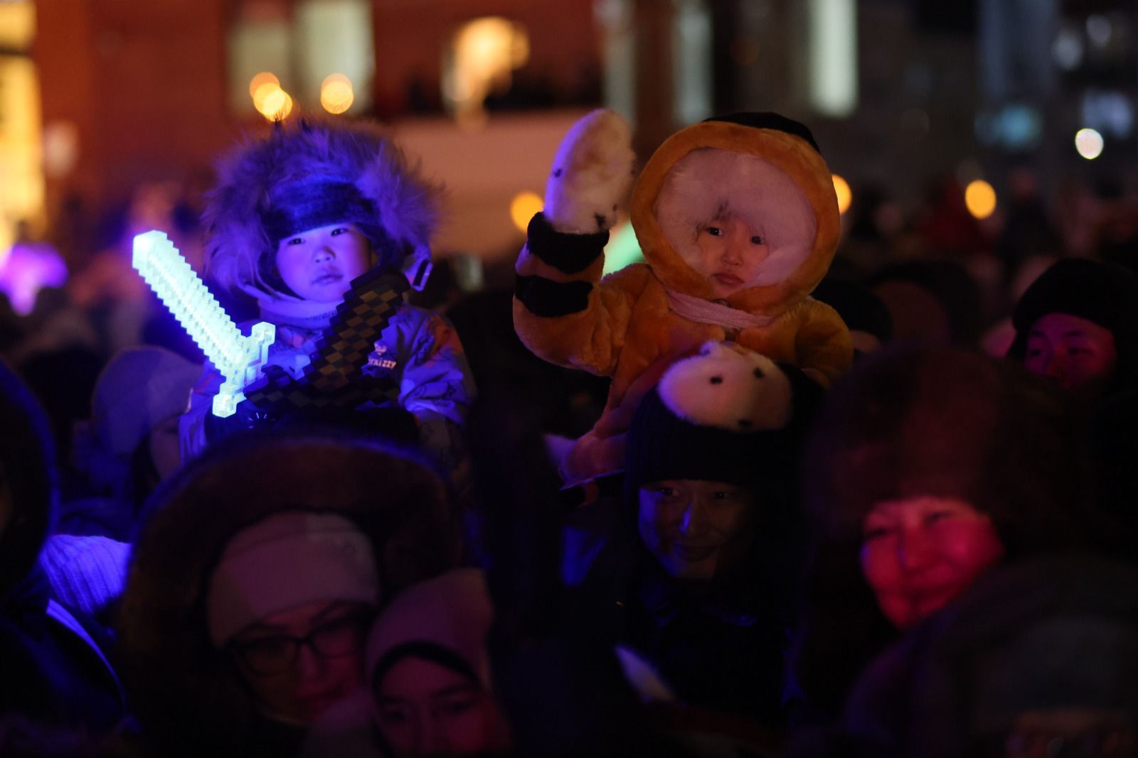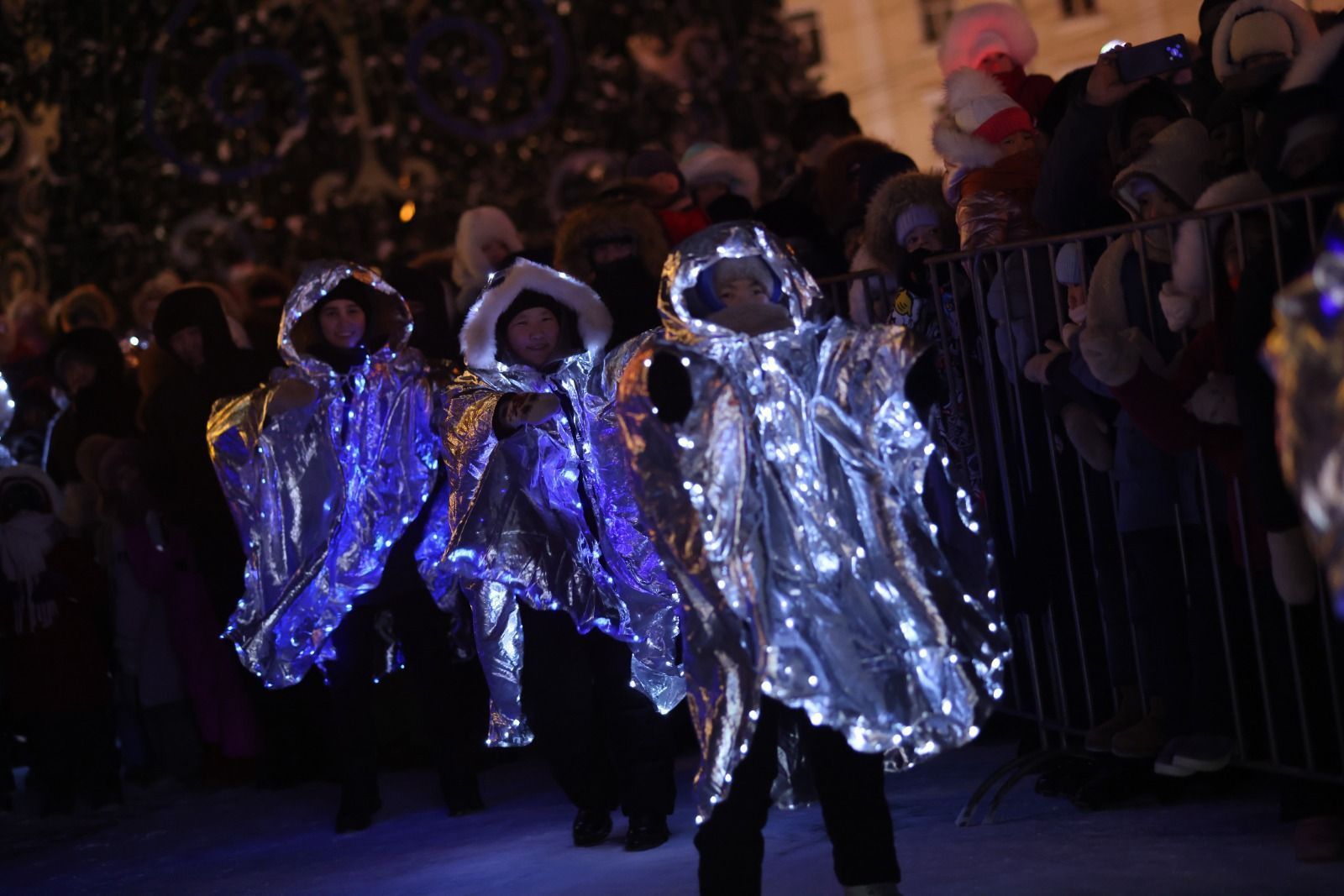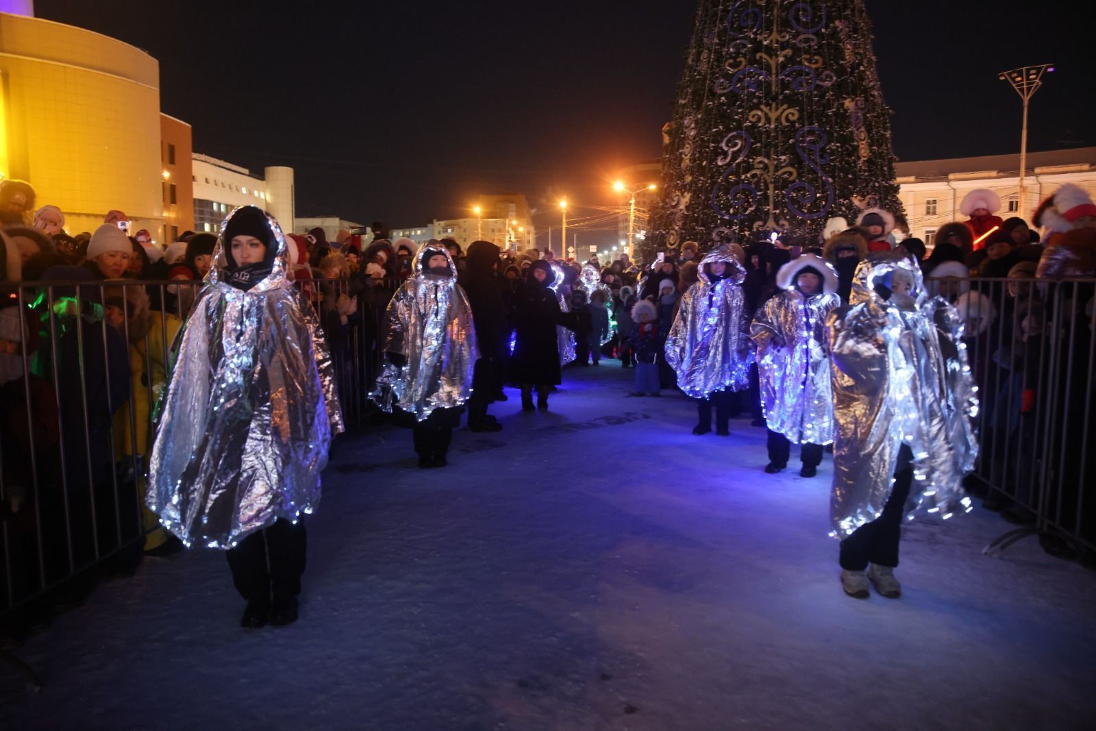 Старт зажжения всех новогодних ёлок в стране дали на площади Дружбы, где установлена главная ёлка Якутии.