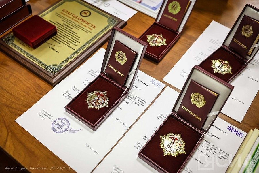 Почётные знаки «От благодарности народа Луганской Народной Республики» вручены руководителю Общественного добровольческого движения женщин-матерей Республики Саха (Якутия) «Швейный цех «Илии сылааһа» (Тепло рук) Ирине Саввиной, руководителю общественного движения «Боевые шелкопряды Якутии» Марине Васильевой, директору швейно-производственной компании «Кэрэ» Александре Колесовой и фотографу-видеографу Сергею Бордачеву. Также вручены Благодарственные письма Руководителя Администрации Главы РС(Я) и Правительства РС(Я) Георгия Михайлова и Заместителя Председателя Правительства Якутии Ольги Балабкиной.