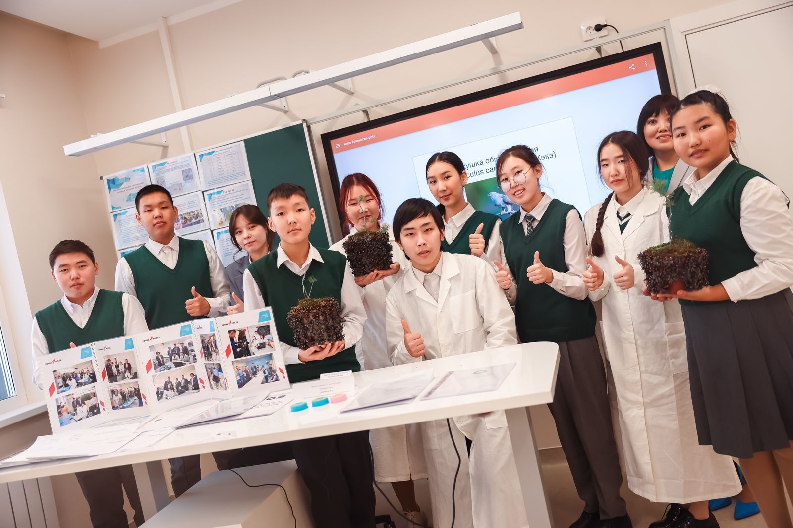 В Хатасской средней школе учатся 1063 обучающихся. Для них в трехэтажном здании площадью 5 тыс. кв.м. создано современное образовательное пространство. Здесь размещены 19 кабинетов. На первом этаже - агро-инжиниринговый центр имени П.П. Федоровой, где располагаются универсальная мастерская по техническим видам труда, кабинеты технологии, автодела и трактороведения, лаборатория цифровых технологий, кабинеты агротехнологии, проектной деятельности, основы бизнеса и предпринимательства, а также столовая на 120 мест и медицинский кабинет.