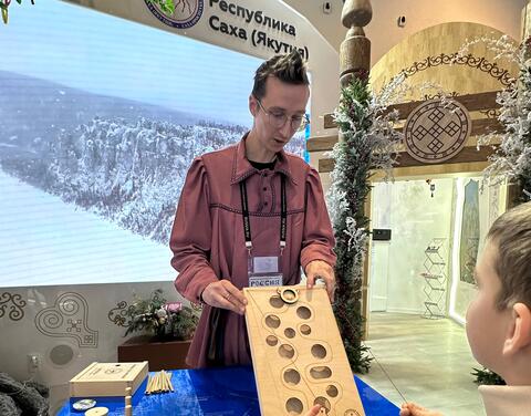 Гости международной выставки форума «Россия» активно принимают участие в национальных якутских играх, проводимых в павильоне республики. По итогам игр каждому победителю вручают памятный сувенир из Якутии.