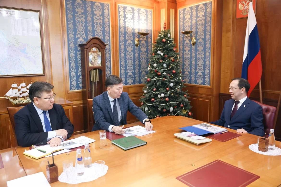 Глава Якутии Айсен Николаев 16 января провел рабочую встречу с Генеральным директором Целевого фонда будущих поколений Якутии Владимиром Егоровым и ректором Малой академии наук республики Василием Павловым.