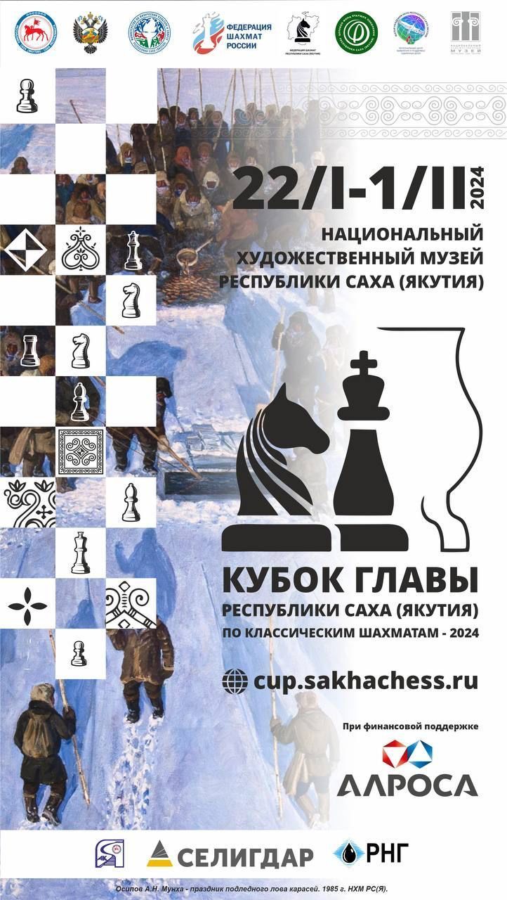 С 22 января по 1 февраля в Якутске, в Национальном художественном музее Якутии пройдут соревнования на Кубок Главы республики по шахматам – этап Кубка России по классическим шахматам среди мужчин.