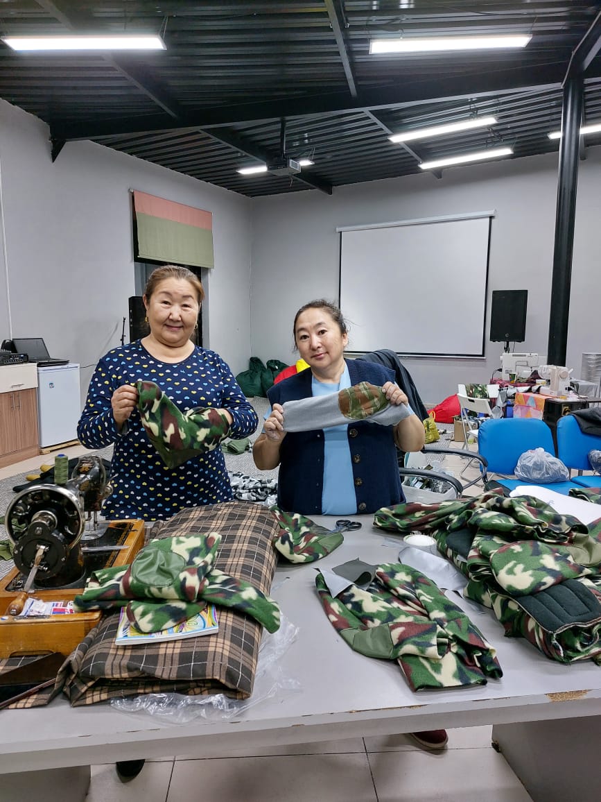 «Начинали с домашних машинок, потом местный предприниматель на безвозмездной основе нам предоставил несколько машинок, потом еще несколько. Работаем, осваиваем новые виды экипировки. Сначала шили аптечки, балаклавы, сейчас уже выпускаем худи из флиса, теплые перчатки и так далее. Постоянно расширяем ассортимент. Недавно ездили в Якутск к нашим подругам из движения «Боевые шелкопряды Якутии», где прошли мастер-классы по пошиву и производству накидок с антидронным покрытием», — поделилась руководитель цеха.