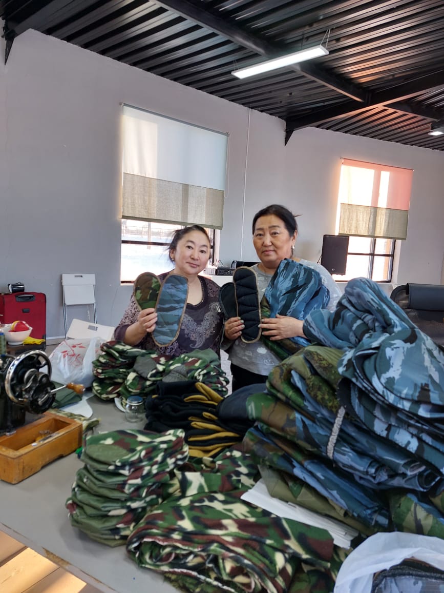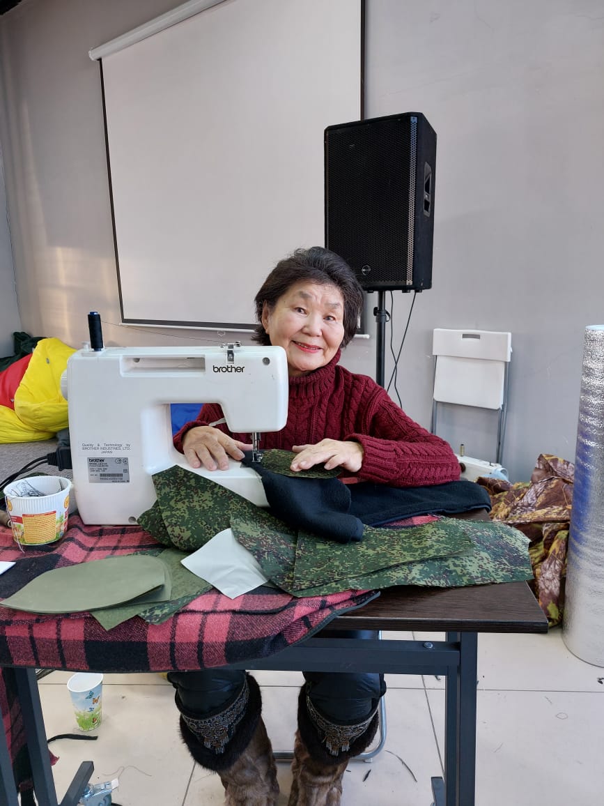 В Нюрбе работает добровольческий швейный цех «КөмүсКэл», который выпускает более 40 видов обмундирования и экипировки для военнослужащих. Как ЯСИА рассказала организатор и руководитель цеха Галина Федорова, всего в движении принимают участие 15 человек, половина из которых в этом году отмечает 75-летний юбилей.