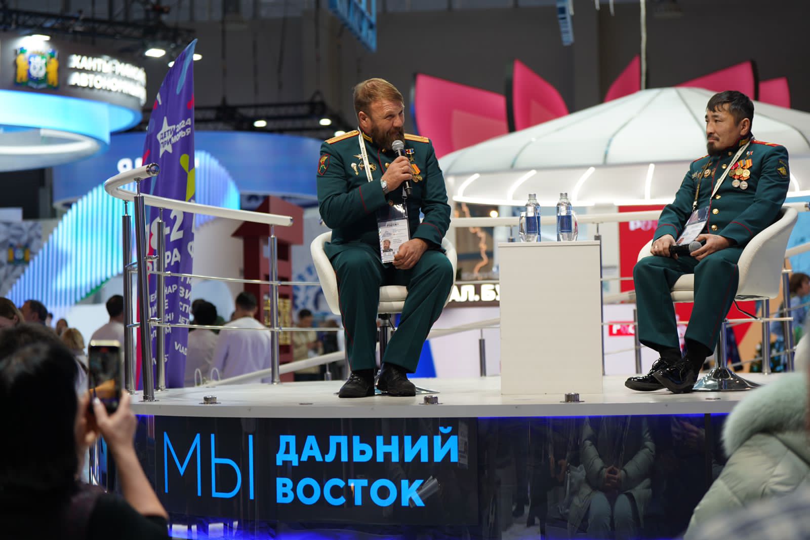 Герои Российской Федерации, участники специальной военной операции рассказали об участии в специальной военной операции на Дне Дальнего Востока и Арктики в рамках Международной выставки-форума «Россия». В мероприятии также принял участие Герой РФ из Якутии, член экипажа танка «Алеша» Филипп Евсеев.
