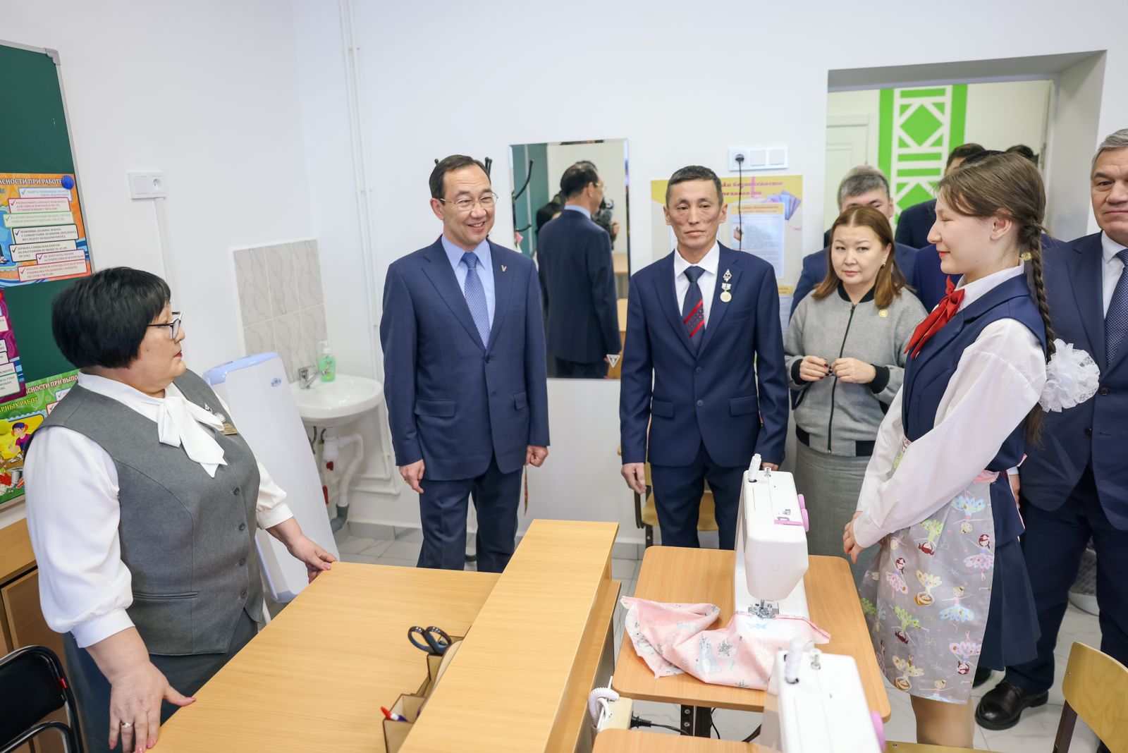 В своем выступлении Айсен Николаев подчеркнул, что это первая школа, которая открылась в этом году – в Год детства в Якутии и в Год семьи в Российской Федерации.