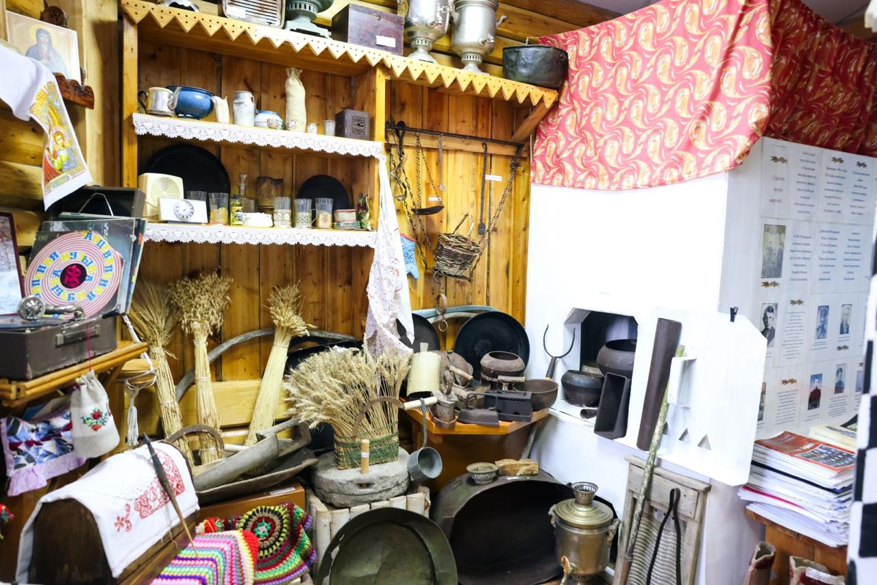 Заведующая библиотекой-музеем Галина Макарова рассказала, что в музее собрано немало подлинных экспонатов: это сани-кошевки екатерининских времён – широкие и глубокие сани с высокой спинкой с плетёным из прутьев кузовом, кованые орудия труда, медаль сельского старшины почтовой станции. Один из залов оформлен под дом ямщика с огромной старинной русской печью, с уголком со старинной одеждой. Здесь можно увидеть старый патефон, пересчитать монеты разных времен, есть и гармони, как же без них в ямщицком доме.