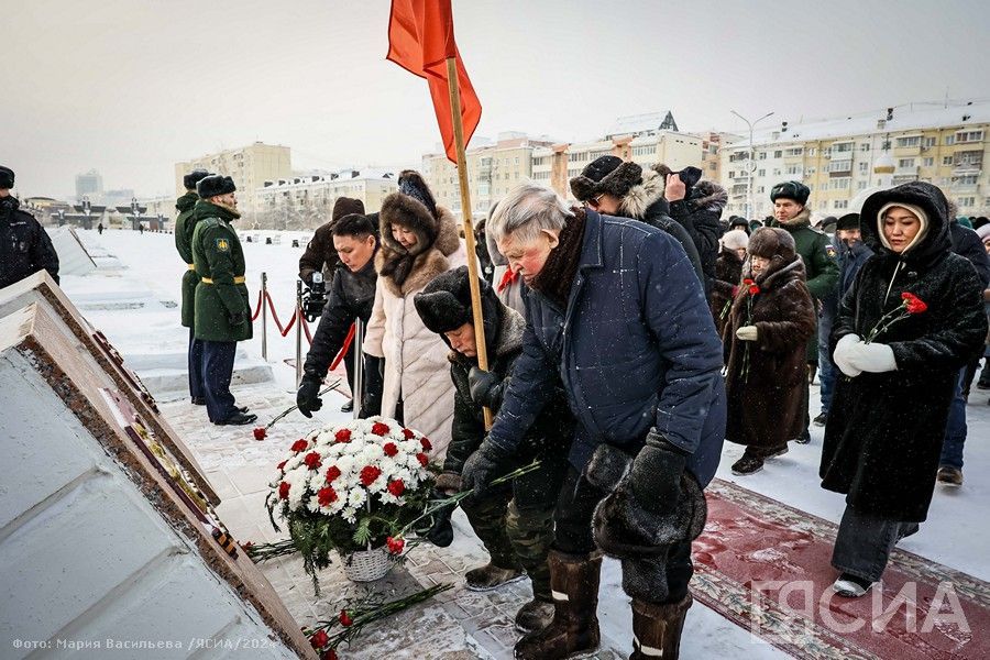 Сегодня, 27 января, на площади Победы города Якутска у мемориальной плиты «Город-герой Ленинград» прошла церемония торжественного возложения цветов, посвященная 80-летию со дня полного освобождения Ленинграда от фашистской блокады.
