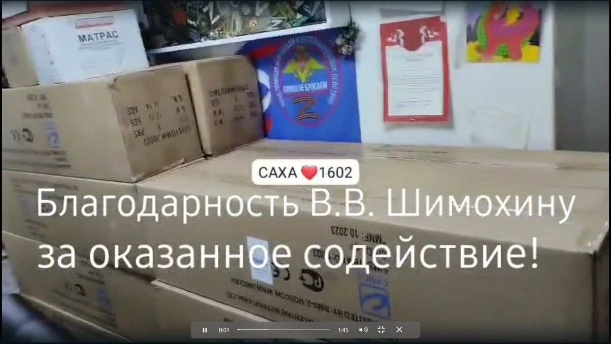 В адрес генерального директора Акционерной компании «Железные дороги Якутии» Василия Шимохина поступило видео с благодарностью за гуманитарную помощь военнослужащим, получивших увечья в ходе выполнения боевых задач в зоне СВО и проходящих лечение в Ростовском военном клиническом госпитале МО РФ. Акционерная компания «Железные дороги Якутии» приобрела для них костыли и кресло-коляски.
