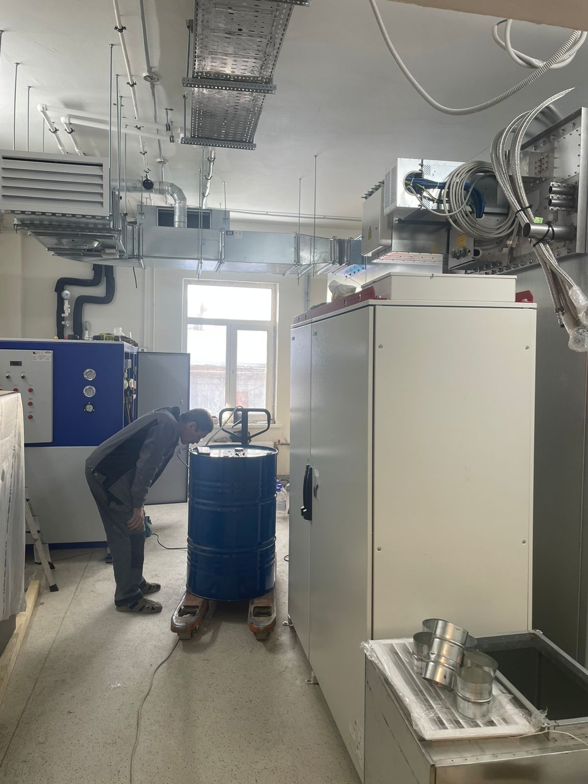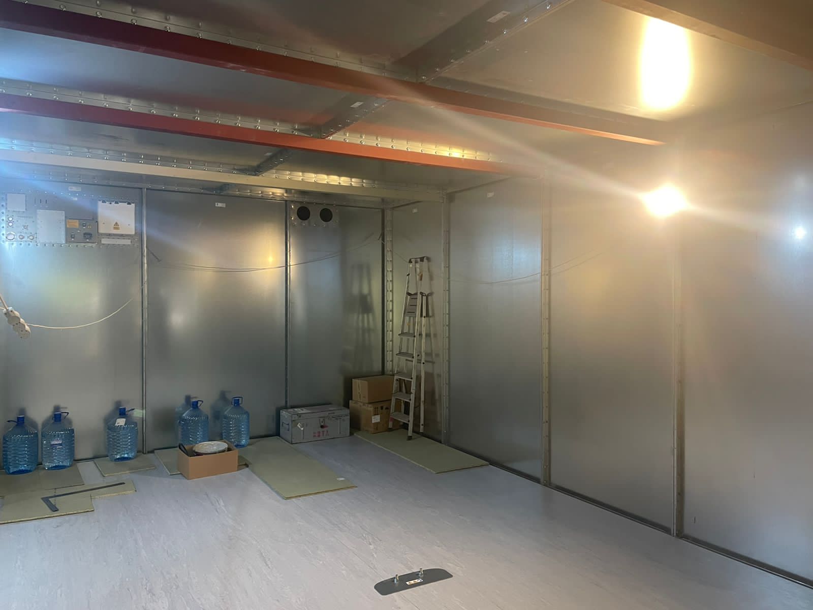 Сейчас на объекте ведутся монтажные работы по монтажу климатической установки, клетки Фарадея для МРТ-оборудования, устанавливаются внутренние двери, сантехника. Ожидается сборка и установка медицинской мебели и оборудования.