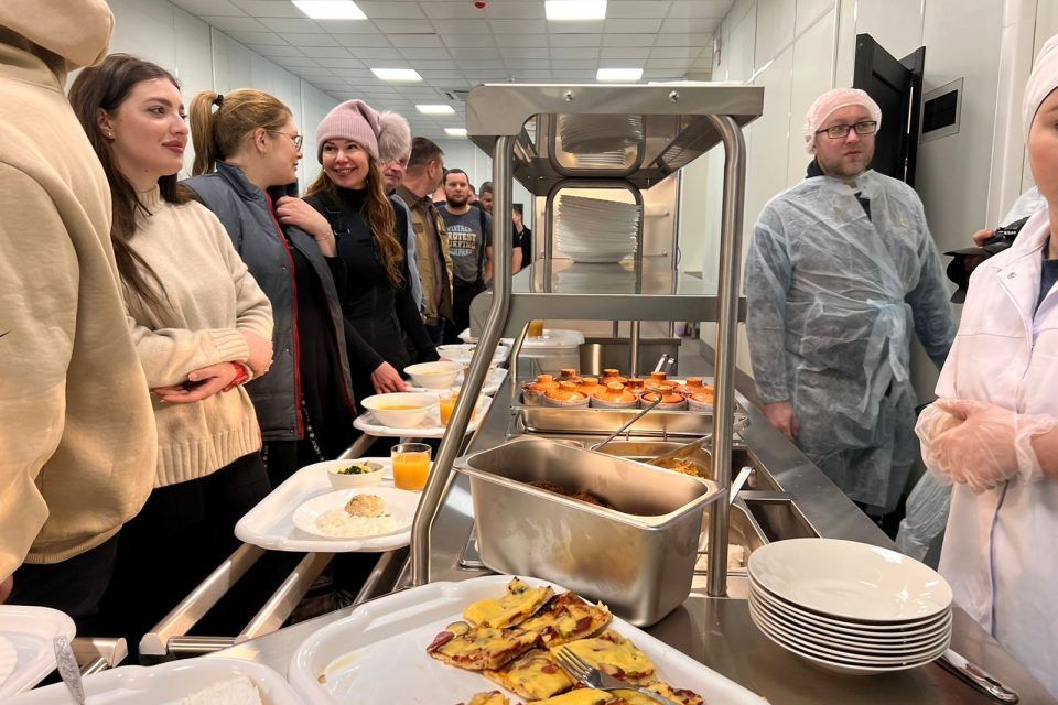 Для первых посетителей провели экскурсию по цехам и служебным помещениям, после они смогли оценить качество предлагаемых блюд, их стоимость и представленный ассортимент.