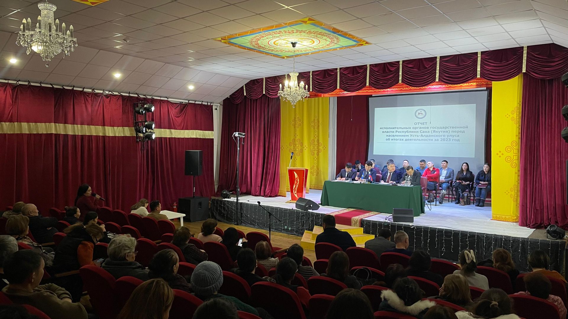 Отчет исполнительных органов государственной власти республики об итогах работы в 2023 году начался сегодня в Усть-Алданском улусе.